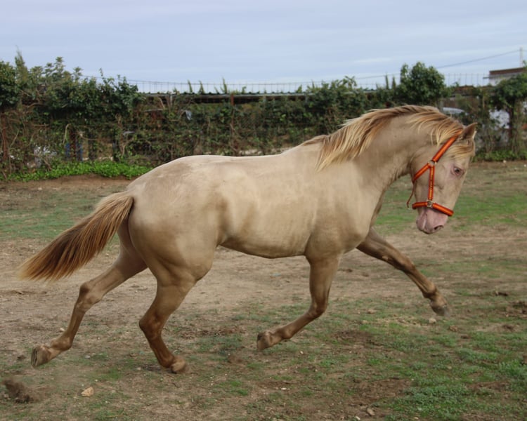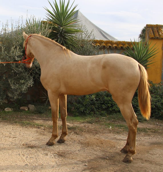 Dorado es un potro de 2 años y medio, inscrito en ANCCE y sometido a prueba de genealogía. Anteriormente se le registraba como Perlino, pero actualmente su color se clasifica como Baya Perla. Tiene un carácter amable, es claro de mente y muy sociable con las personas. Como todo potro joven, a veces puede tener sus pequeñas travesuras, pero siempre es manejable sin problemas. Dorado proviene directamente del criador y hasta casi los 2 años pudo criarse en una manada de sementales. Conoce la cuerda y ya se le ha puesto alguna vez una silla de montar. Si buscas un caballo especial para desarrollarlo tú mismo, este hermoso muchacho es la opción perfecta. A petición, Dorado puede quedarse con nosotros para su entrenamiento. Se puede solicitar un examen clínico completo (AKU). El transporte se organiza a nivel internacional. Videos disponibles bajo solicitud.