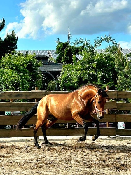 **Ogłoszenie na sprzedaż: Elegancki ogier PRE na sprzedaż** Oferujemy na sprzedaż obiecującego młodego ogiera PRE. Ten imponujący gniadosz urodził się w 2022 roku i już teraz wykazuje ogromny potencjał ujeżdżeniowy. **Charakterystyka:** - Rasa:** Pura Raza Española (PRE) - Płeć:** Ogier - Rok urodzenia:** 2022 - Kolor:** gniady - Wzrost:** 158 cm - Dyscyplina:** ujeżdżenie Ten ogier zachwyca eleganckim wyglądem i zrównoważonym temperamentem. Idealnie nadaje się do ujeżdżenia, jest zmotywowany i chętny do nauki. Jego harmonijna budowa i ruch w terenie sprawiają, że jest idealnym partnerem dla ambitnych jeźdźców. Jak na swój wiek jest wyszkolony w stępie i ABC treningu źrebiąt. Jeśli jesteś zainteresowany tym wyjątkowym koniem, czekamy na wiadomość od Ciebie. Prosimy o kontakt w celu uzyskania dalszych informacji lub umówienia się na oglądanie.