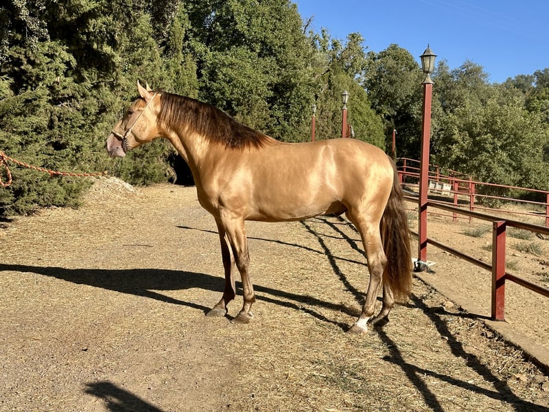 Isabelo-colored PRE colt. At 2 years old. Direct son of Isleño CXVIII. He is a colt with breed and good height. Super correct. Very beautiful, well-defined head. And a magnificent character. Very good opportunity, National and international transport can be organized. Are you looking for something very special and exclusive? We have what you want. Careto is a two-year-old horse. He is Pura Raza Española. Full papers. His color is isabella. Double pearl. His father is one of the most famous isabello stallions at this moment, Isleño CXVIII. His real size is 162 cm. Still growing. He stands out not just for his perfect conformation but also for his movements and excellent character. He can be a golden opportunity for those who love exclusive things. He can also be a good option for those who want to improve their breeding programs. Very good value for money. Transport can be easily organized. For more information, send us a private message or contact us via WhatsApp. We speak English.