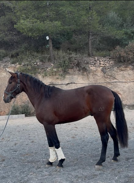 Jeune poulain de robe baie, il aura 3 ans en mars 2026. Ligne spectaculaire de PRE pour dressage de grande taille, 1,68 m. Mouvements exceptionnels, parfaits pour un dressage de haut niveau, également idéal comme futur étalon. Récemment sorti du pré.