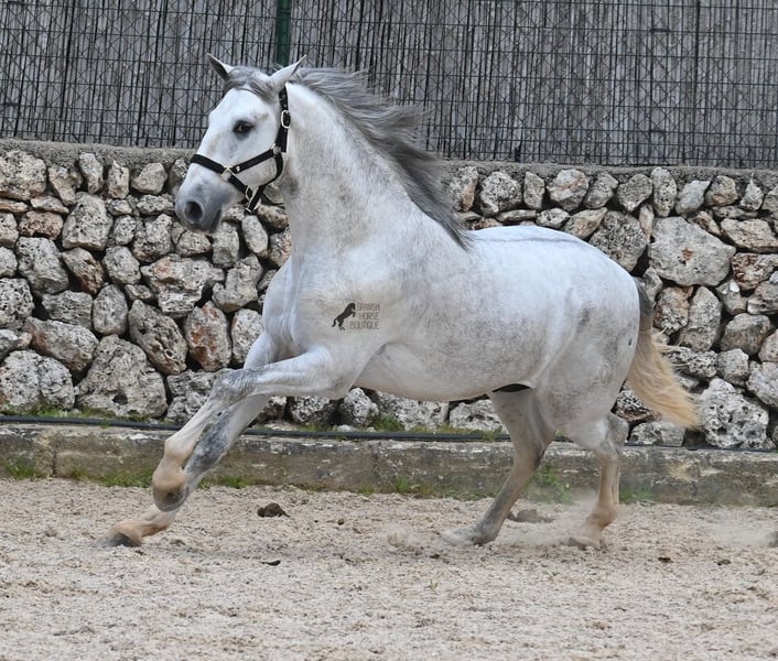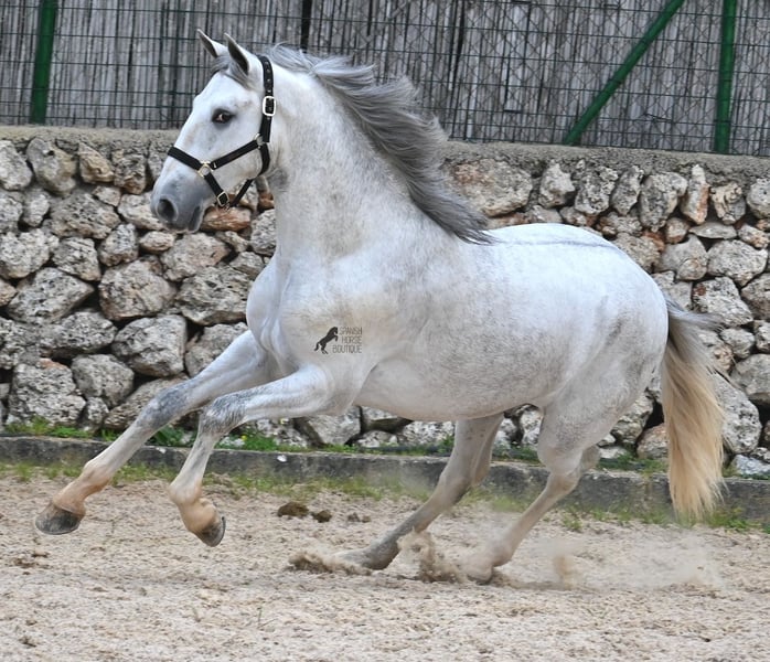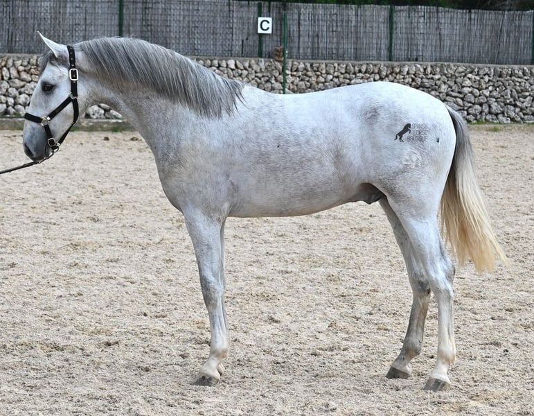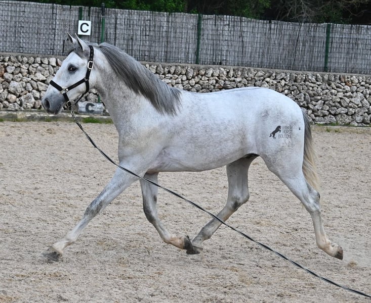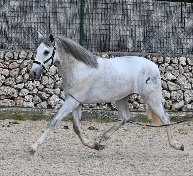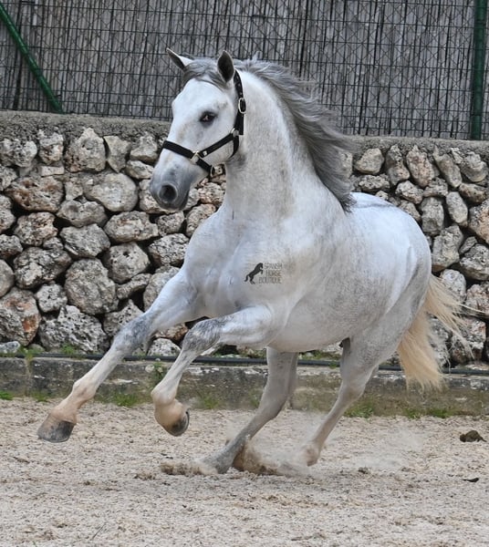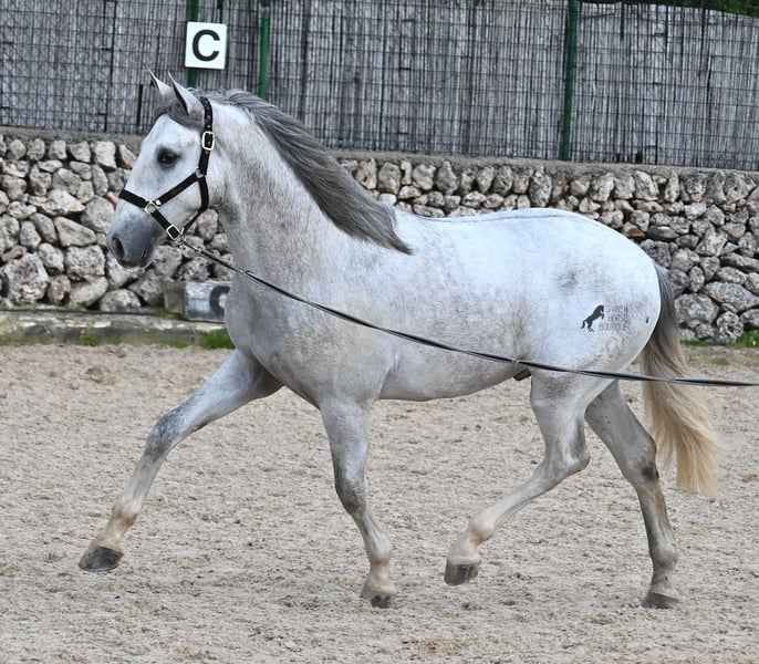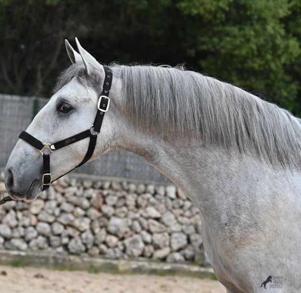 This 2023-born, purebred PRE (Andalusian with pedigree certification from ANCCE) could not have a nobler lineage! His father is the multiple world champion FER BONACHON de Eda, so on the paternal side, he could hardly be more exquisitely bred... But the lineage of the mother is also exquisite, as she was already successful at breeding shows at a young age and was even crowned champion mare of the competition! She is not only a descendant of ARMAS FELINO but also has Campo Bajo blood. The value of selective breeding is truly evident in this high-quality youngster. Champions on both sides of the pedigree, providing him not only with breed-typical characteristics but also with good movement. He has already demonstrated this at the breeding show. Thus, he is already accustomed to being loaded, being in new places, and lunging with a halter. As it is preferred at the breeding show, he is temporarily shod in front but will be transitioned back to barefoot. He also regularly goes into the lunging machine to build muscle and not just grow in height, as he already measures 160cm and is expected to grow towards 170cm!! For the preparation for the breeding show, he was moved from the stallion herd and now lives in a paddock box next to other stallions and is accustomed to having mares nearby – they smell quite interesting for the teenager ;) Price according to quality. His current height is 160cm. He is currently in Menorca! Videos and pedigree available upon request. I would be happy to organize an AKU (pre-purchase examination), castration, training, transport, or even your trip if you wish to come see him in person. Details are available on my page or in conversation. Greetings from Spain.