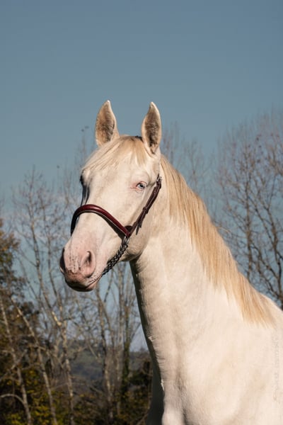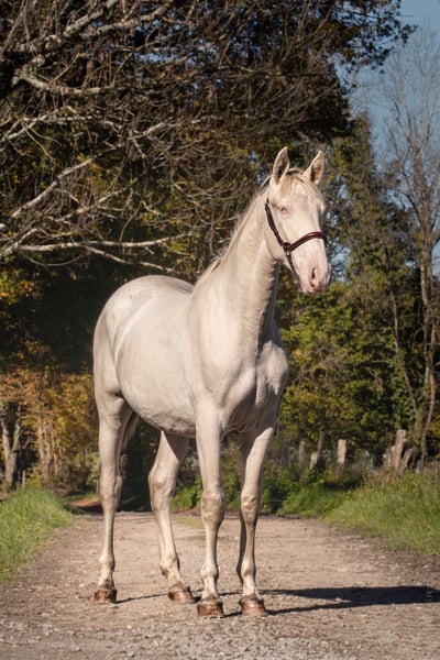 We offer you this young perlino male, a future breeding stallion with exceptional qualities. His rare and precious coat, carrying cream genes, guarantees the transmission of diluted colors (isabelle, palomino, perlino, cremello, etc.) to his future offspring, a real treasure to enrich your breeding program. Orgulloso's strong points: ⚜️Une unique genetics: thanks to its perlino coat, this young horse is an ideal choice to bring color and originality to your foals. ⚜️Un Exemplary character: Calm, curious and easy to handle, he shows a reliable and balanced temperament, qualities he will be able to pass on to his offspring. ⚜️De prestigious origins: from bloodlines renowned for their beauty and performance, he has everything it takes to become a sought-after, high-performance sire. This young horse is a rare opportunity for breeders wishing to add real value to their program: elegance, diversity of coat and outstanding mentality. Make a forward-looking choice for your breeding program! For further information or to arrange a visit, please do not hesitate to contact us. --- ALEGRIA - Find the horse of your dreams and create a unique relationship based on trust and complicity. At Alegria, we know that buying a horse is much more than a simple transaction. It's about finding a life partner with whom you can build a solid and fulfilling relationship. We offer you expert support every step of the way, so that you can make an informed choice and start this adventure with complete peace of mind. Why choose Alegria? Personalized support to guide you in your choice. We help you find the horse that matches your personality, expectations and skills, so that the relationship that develops with him is fluid and natural. ✨ Our team of experts will advise you, guide you and support you every step of the way, so that you make an informed choice without rushing. Horses raised in an environment conducive to their well-being. Our horses are raised in exceptional conditions, where they benefit from gentle, respectful training ️ based on our exclusive "Relationship of Complicity" method. Each horse is prepared to be a reliable, responsive and balanced partner, ready to build a relationship of trust with you. Quality care for optimum health. The well-being of our horses is paramount. They are regularly monitored by animal health experts: veterinarians, osteopaths, farriers and dentists. This medical follow-up guarantees that your horse will be in tip-top shape, ready to begin this new relationship with you in the best possible conditions. Transparent follow-up thanks to progress sheets. Each horse has a detailed progress sheet, so you know exactly what level he's at, his strengths and his character. This transparency gives you all the keys you need to choose the horse that's right for you and the relationship you want to build with him. Ongoing support for a successful relationship. At Alegria, we believe that a lasting relationship can't be improvised. That's why we stay by your side after the purchase, with personalized follow-up to help you build a real bond with your horse. Thanks to our face-to-face and distance learning courses, you'll learn to better understand your horse and strengthen the foundations of your relationship. Testimonials from satisfied customers. We have assisted hundreds of riders in their projects. 100% of our customers are satisfied with the support they receive and the relationship they develop with their horse. Their testimonials are the best proof of the quality of our work and the success of the relationships we foster. Find the horse that's right for you. Discover our selection of exceptional horses and start imagining the relationship you'll create with him. Consult the progress charts and let our team of experts guide you to find the horse that meets your expectations. Discover our selection of horses at www.alegriacomplicite.com and start building the relationship of your dreams. Alegria - Find the horse that's right for you and build a relationship based on trust and complicity.