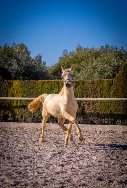 Young horse: Very elegant PRE type, dressage bred. ( Yeguada Military ) Salvano is still in full growth and will grow to around 166cm. He can already move very well and is very attentive and sweet to deal with. Parentage can be viewed upon request. He grows up in a herd and is very social. ( Open Housing )