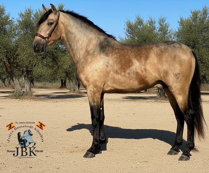 An absolute eye-catcher is this PRE stallion. Born on April 14, 2022, he is lunged with a saddle. His bloodline is impressive: with Lego from Yeguada Militar, who is both licensed (calificado) and a breed improver, as well as Educado X from the Guardiola breeding, an elite example of the PRE breed. Paco Marti is also involved in his pedigree. Anyone who appreciates a movement-rich young horse has acquired a fantastic prospect for training.