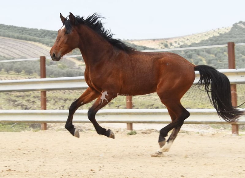 Przepiękny młody brązowy ogier PRE, dobre ruchy