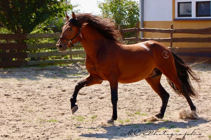 In vendita: Cavallo Vendiamo un bellissimo stallone PRE (Pura Raza Española), nato nel 2022, con un manto marrone chiaro e un'altezza di 158 cm, è un vero colpo d'occhio. Il nostro giovane stallone è già molto promettente per il dressage. I suoi movimenti sono eleganti e potenti, ma sempre equilibrati e controllati. La sua natura attenta e la sua volontà di imparare rendono il lavoro con lui un vero piacere. Lo stallone è ben socializzato ed è sempre amichevole e curioso nei confronti delle persone e degli altri cavalli. È un cavallo con un potenziale che può diventare una vera star nell'arena del dressage con il giusto incoraggiamento e le giuste cure. Se siete alla ricerca di un compagno talentuoso e carismatico per il dressage, questo giovane stallone potrebbe fare al caso vostro. Contattateci per maggiori informazioni o per organizzare una visita. Non vediamo l'ora di presentarvi il nostro tesoro baio.