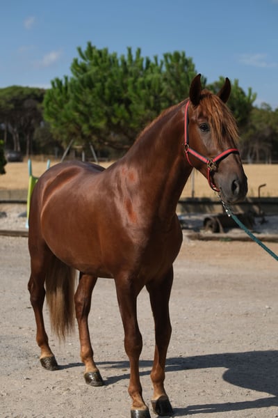 Ce magnifique étalon PRE est à la recherche de son âme sœur. Il a une incroyable présence et de magnifiques allures. De plus, sa couleur de pelage est particulière. Sur le plan du caractère, il est très curieux, poli et respectueux. Il a 3,5 ans et mesure 1,60 m. À l'âge adulte, nous l'estimons à environ 1,62-1,64 m. Il est déjà monté, et il le fait avec beaucoup de gentillesse. À l'avenir, nous pouvons l'imaginer dans de nombreux domaines, que ce soit en dressage, pour l'équitation de travail, pour des spectacles, pour la reproduction (il est approuvé) ou simplement comme partenaire de loisirs. Il a pu passer son enfance dans un grand troupeau de juments et leurs poulains au pré, et à environ 8 mois, il a été séparé de sa mère pour vivre dans un troupeau de jeunes étalons. Il a maintenant été mis en box, donc il connaît déjà l'écurie. Il a déjà des radiographies sans constatation et un test de Piroplasmose négatif. Sur demande, il peut également être castré sur place en Espagne. Localisation : Barcelone, Espagne, une rencontre en Espagne et le transport peuvent être facilement organisés.