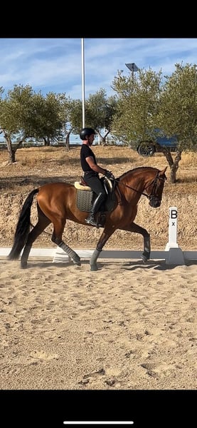 Se ofrece caballo Pura Raza Español (PRE) de 4 años, castaño claro, con una línea genética excepcional : descendiente de Educado X. Ejemplar de gran belleza, con una morfología impecable, movimientos amplios y expresivos, y un carácter noble y equilibrado. Ideal tanto para doma clásica como para disfrute personal o competición. Datos destacados: • Origen: Línea Educado X • Edad: 4 años • Capa: Castaño claro • Inscrito en ANCCE con toda la documentación al día • Carácter: Muy dócil, confiado y con excelente predisposición al trabajo • Doma: En fase de doma básica, con base sólida y gran facilidad de aprendizaje Este joven PRE reúne nobleza, elegancia y genética, tres cualidades que lo convierten en una auténtica promesa para quien busca un caballo con presencia, calidad y proyección.