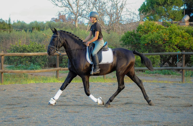 RONDEÑO RRR III est un poulain né en élevage, élevé en harde et en semi-liberté jusqu’à l’âge de trois ans. Très noble dans son attitude, il est actuellement en cours d’éducation et apprend avec enthousiasme. Il possède trois allures très bonnes, avec une préférence pour son pas remarquable. Origines exceptionnelles (JL Escalera) Entièrement noir (sans marque) Si vous nous rendez visite, vous pourrez rencontrer ses parents, ses frères et sœurs, ainsi que le processus de reproduction. Chez Yeguada JM Tresserras, nous élevons des PRE depuis 1979. Nous sommes situés à Valls, Tarragone (près de Barcelone). Nous parlons anglais, français et italien.