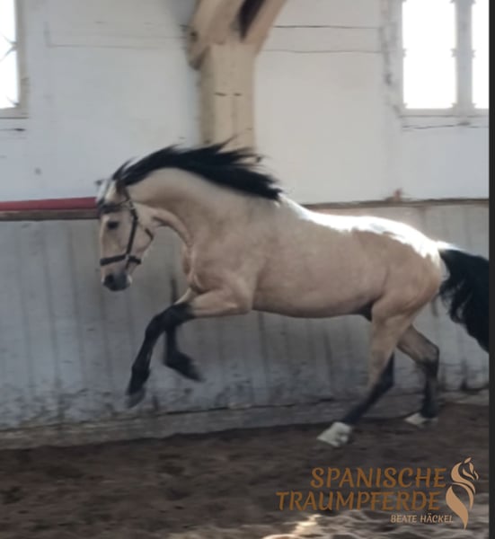 PRE-Hengst in traumhafter Falbfarbe – charmanter Blickfang mit tollen Bewegungen Dieser wunderschöne PRE-Hengst in traumhafter Falbfarbe mit herrlich dunklem Behang ist bei uns in Traventhal eingezogen und sucht nun seinen ganz besonderen Menschen sowie ein liebevolles Für-immer-Zuhause. 🐎✨ SULEIMAN überzeugt nicht nur durch seine edle Erscheinung, sondern auch durch seinen charmanten und aufgeweckten Charakter. Mit einer komfortablen Größe von 164 cm bringt er ideale Voraussetzungen für viele Reiter mit. Sein ausdrucksstarkes Köpfchen mit den großen, runden Kulleraugen erobert im Nu jedes Herz. ❤️ Auch bewegungstechnisch weiß dieser PRE-Hengst zu begeistern: Er verfügt über raumgreifende, taktsichere Grundgangarten und zeigt sich motiviert und angenehm unter dem Sattel. Damit bringt er beste Voraussetzungen für ein wundervolles Reitpferd mit – egal ob für Freizeit, Dressurarbeit oder weitere Ausbildung. Im täglichen Umgang präsentiert sich SULEIMAN menschenbezogen, aufmerksam und freundlich. Er ist ein echter Hingucker mit Ausstrahlung und Charme. SULEIMAN sucht einen Menschen, der seine Qualität und seinen besonderen Charakter zu schätzen weiß und ihn weiter fördert. Röntgenbilder sind vorhanden Standort: 23795 Traventhal Ein Kennenlernen unseres SULEIMAN SH ist nach Absprache nahezu jederzeit möglich. Für diesen Kennenlerntermin aus Bodenarbeit, Spazierengehen, gegebenenfalls Probereiten, nehme ich mir ausreichend Zeit, damit du dein Traumpferd in allen Facetten ganz in Ruhe kennenlernen kann. Dafür berechne ich zum Schutz unserer Pferde und um Reittourismus vorzubeugen eine Pauschale von 50 €.