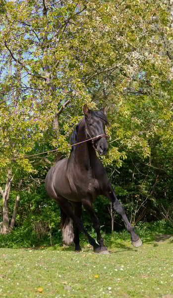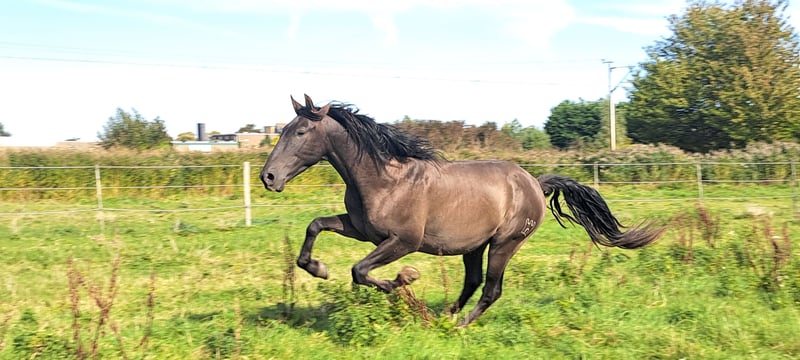 Please read carefully and only respond if you have serious interest. Zorro (officially Zaguero Soto Gil IV) is a beautiful black four-year-old PRE stallion with a passport and carta and an excellent pedigree. Height at the withers is approximately 163 cm. He arrived in the Netherlands in October 2024 and after a period of rest to settle in, he was started this spring. Unfortunately, he began to show signs of resistance while being ridden. This was examined at the clinic in June, and it was found that Zorro has several abnormalities: - sacralization of L6 (fusion of the 6th lumbar vertebra and the sacrum) - an asymmetrical (crooked) pelvis (see last photo) - changes to the bone and ligament in the right hock - neck and back are fine (photos available) These factors make it unclear what Zorro's future soundness under saddle will be. Additionally, the sacralization is hereditary, making him unsuitable for breeding! Zorro has now had three months of rest and is currently sound again. I am gradually starting to work with him under saddle again, and I cannot report any unsoundness or resistance. I am looking for someone who understands straightening, groundwork, and longlining, and does not prioritize riding immediately. Unfortunately, I already have a horse with medical issues and do not have the facilities to train him properly given these circumstances. Zorro is still quite green under saddle but is absolutely not spooky or nervous and learns very quickly. He is an incredibly sweet, beautiful, and intelligent horse that thrives during groundwork and loves to cuddle and go on adventures. I have taken him outside, and that went well. He is a stallion and is currently in a group with two geldings, which is going well because he is social. He is currently chemically castrated, which works super. He was just a bit too stressed at times before this. He has never shown any aggression towards humans and is always easy to handle. The asking price is firm. I brought him from Portugal for three times the price. A vet check is of course allowed (costs for the buyer). For videos of him being ridden and free, more information, and medical reports, you can send a message to 0618940271 (please do not call), or email sararoestfry@gmail.com.