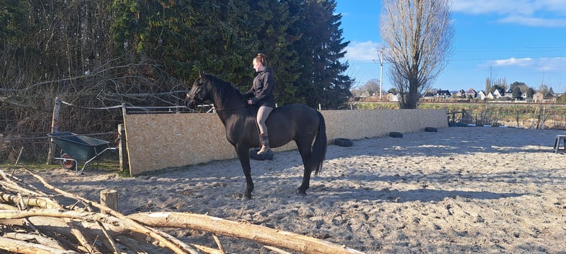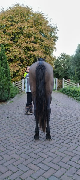 Nederlands Vriendelijke PRE-hengst (4 jaar, ca. 1.63 m, zwart) met paspoort ,carta en Ancce papier. Sociaal in de kudde (staat met twee ruinen), mensgericht en talentvol in loswerken. Inmiddels rij ik hem al twee weken regelmatig; hij loopt soepel en zuiver, zoals te zien is op de video’s. Eerlijk dossier beschikbaar: aangeboren sacralisatie L6–S1 en bekkenasymmetrie; in 2025 aandacht rechter sprong, sarcoïd verwijderd. Daarom is de belastbaarheid op lange termijn onbekend → verkoop als project voor een ervaren adres (niet voor fok). Keuring k.k. Video’s/rapporten op aanvraag. Prijs: €6.500 (vast), Enkhuizen (NH). Optioneel castratie vóór levering: koper betaalt de kliniek rechtstreeks. English Friendly PRE stallion (4 yrs, approx. 1.63 m, black) with passport and carta. Social in a small herd (with two geldings), people-oriented, talented at liberty work. I have been riding him regularly for two weeks now; he moves smooth and sound, as shown in the videos. Transparent vet file available: congenital L6–S1 sacralisation and pelvic asymmetry; 2025 note on the right hock, sarcoid removed. Therefore long-term ridden capacity is unknown → sold as a project for an experienced home (not for breeding). Pre-purchase exam welcome (buyer’s cost). Videos/reports on request. Price: €6,500 (fixed), Enkhuizen (NL). Optional castration prior to delivery: buyer pays the clinic directly.