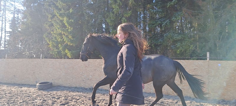 Bitte sorgfältig lesen und nur bei ernsthaftem Interesse antworten. Zorro (offiziell Zaguero Soto Gil IV) ist ein wunderschöner schwarzer vierjähriger PRE-Hengst mit Pass und Carta und einer sehr guten Abstammung. Stockmaß ca. 163 cm. Er ist im Oktober 2024 nach Deutschland gekommen und nach einer Ruhephase, um sich einzugewöhnen, wurde er in diesem Frühjahr wieder in Arbeit genommen. Leider hat er beim Reiten schnell angefangen zu staken. Dies wurde im Juni in der Klinik untersucht, und es stellte sich heraus, dass Zorro einige Abweichungen hat: - Sakralisation L6 (Verwachsung des 6. Lendenwirbels mit dem Kreuzbein) - ein asymmetrisches (schiefes) Becken (siehe letztes Foto) - Veränderungen am Knochen und dem Band im rechten Sprunggelenk - Hals und Rücken sind in Ordnung (Fotos vorhanden) Diese Faktoren machen es unklar, wie Zorros Belastbarkeit unter dem Sattel in der Zukunft sein wird. Auch ist die Sakralisation erblich, wodurch er für die Zucht ungeeignet ist!!! Zorro hatte jetzt drei Monate Ruhe und läuft momentan wieder klar. Ich beginne ihn jetzt wieder behutsam unter dem Sattel zu arbeiten und kann keine Unsauberkeiten oder Staken feststellen. Ich suche für ihn jemanden, der Erfahrung im Geraderichten, Bodenarbeit und Freiarbeit hat und nicht sofort die erste Priorität beim Reiten hat. Ich habe leider selbst schon ein Pferd mit medizinischen Problemen und nicht die Möglichkeiten, ihn mit diesen Hintergründen gut zu trainieren. Zorro ist unter dem Sattel noch relativ grün, aber absolut nicht schreckhaft oder nervös und lernt sehr schnell. Es ist ein unglaublich liebes, schönes und schlaues Pferd, das beim Freiarbeiten aufgeht und gerne kuschelt und Abenteuer erlebt. Ich war mit ihm draußen, und das lief prima. Er ist ein Hengst und steht momentan in einer Gruppe mit zwei Wallachen, was gut funktioniert, da er sozial ist. Er ist derzeit chemisch kastriert, was super funktioniert. Davor war er in manchen Momenten etwas zu gestresst. Dies hat er jedoch nie gegenüber Menschen gezeigt und ist immer gut zu handeln. Der Preis ist fest. Ich habe ihn selbst für viel mehr aus Portugal geholt. Eine Untersuchung ist natürlich erlaubt (Kosten trägt der Käufer). Für Videos unter dem Sattel und in der Freiarbeit, weitere Informationen und medizinische Berichte können Sie eine Nachricht an 0618940271 (bitte nicht anrufen) oder eine E-Mail an sararoestfry@gmail.com senden.