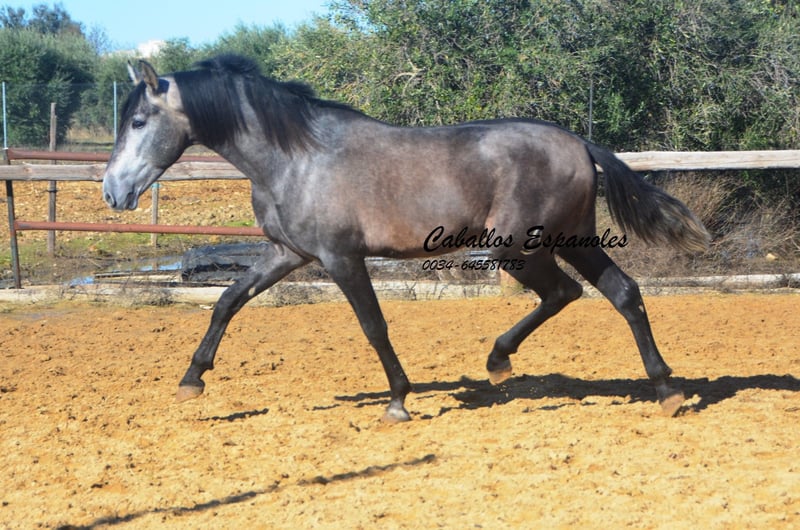 Dieser tolle, qualitätsvolle auf Dressur gezogen PRE Hengst gefällt durch seine Ausstrahlung und seine überragenden Bewegung. Dieser junge Hengst wird bei entsprechender Förderung in der Dressur sehr viel Freude bereiten. Im Umgang ist er superbrav und genießt die Streicheleinheiten. Er ist longiert und wird nun langsam an sein Leben als Reitpferd vorbereitet. Ein tolles Pferd zum Selbstausbilden, mit allerbester Zuchtlinie Seine Abstammung ist vom Feinsten. Ihr Vater ist der große Rappe Nelson (Yeguada Militar), sein Vater Gerente geht auf Remache zurück. Ihre Mutter vereint Candau Blut, Escalaera und den bewegungsstarke Vinatero III Das Pferd wird im Auftrag verkauft. Er kann gerne bei uns noch in Beritt bleiben. Eine AKU wird kurzfristig organisiert. Internationaler Transport.