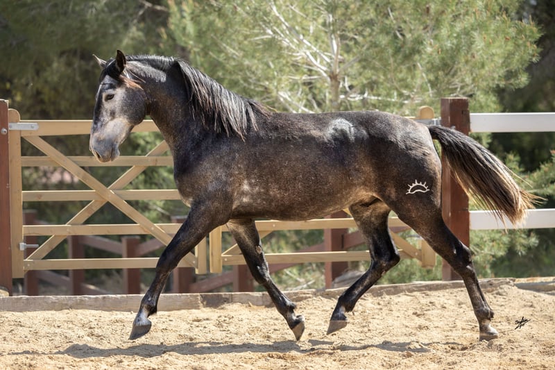 Este hermoso potro joven de estilo barroco busca un hogar. Ha crecido en libertad en manada y proviene de una cría cuidadosa y amorosa. Posee excelentes movimientos básicos y un carácter excepcional, muy confiado y cercano a las personas. Actualmente, ya se le está iniciando en la monta con delicadeza y se trabaja con él desde el suelo. Conoce el trabajo en el picadero, la entrega de cascos y también es tranquilo en el remolque. Se estima que alcanzará una altura de aproximadamente 1,64 m. Las radiografías están disponibles y no muestran ninguna anomalía. Para más información, no dude en contactarnos: +49 171 528 48 65.