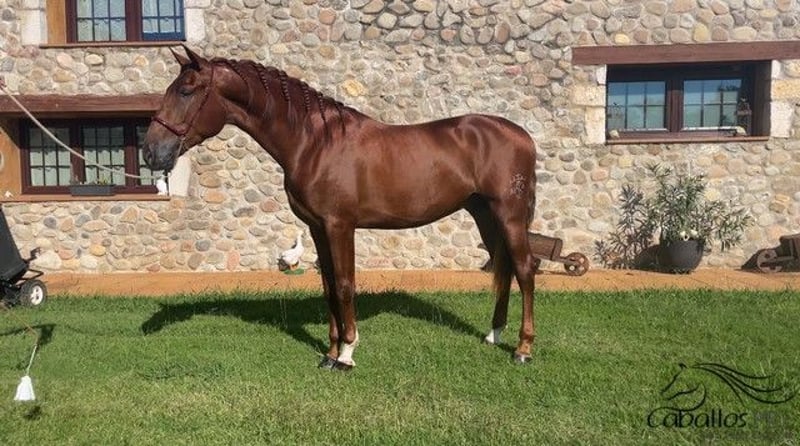 Pirata is three years old and currently measures approximately 1.65/66 m tall. Very likable chestnut stallion with good size and excellent gaits. He is currently being gently backed. He always shows a willingness to work and does a great job. He has an impressive pedigree: Marin Garcia - Marti Verdia and Granda Losada. With appropriate training, he will certainly be very interesting for Classical Dressage. For more information, please feel free to contact us by phone. Castration is possible on-site. Transport can be organized worldwide. Viewing is, of course, possible by appointment.