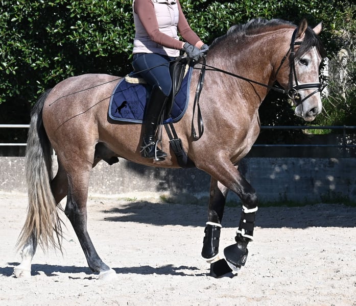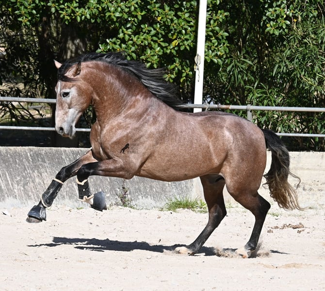 Dieser 2022 geborene, reinrassige PRE Hengst (Andalusier mit Rassenachweis der ANCCE), ist ein ganz besonderes Juwel. Ein königlicher Spanier wie aus dem Bilderbuch, der nur so vor Eleganz, Sanftmut, Lebensfreude und Klasse strahlt. Sein sehr barockes Exterieur, zusammen mit seinem weichen Blick und seinem feinen Kopf, lassen an seiner spanischen Reinheit nicht zweifeln. Kenner des PRE werden beim Anblick seiner Abstammung auch leuchtende Augen bekommen! Der schöne Jüngling ist ein Enkel von FER BAGO von FERRERO (Vater des mehrfachen Weltmeister Fer Bonachon de Eda) und diese Pferde stehen für spanisches Feuer, dass in perfekter Harmonie mit ihrem menschenfreundlichen Charakter gemischt wird. Mütterlicherseits ist er BOHORQUEZ gezogen- barocke Pferde, die klar im Kopf sind und sehr arbeitssam und vielseitig sind. Und diese hervorragende Abstammung, spiegelt sich in diesem Hengst wider- er ist ganz sanft, liebevoll und arbeitssam. Gleichzeitig versprüht er nur so Lebensfreude, die einen direkt ansteckt und so ein Pferd, macht einfach glücklich. Im Umgang ist er ein absoluter Gentleman und könnte sich nicht besser benehmen! Obwohl er noch nicht lange unterm Sattel ist (Winter 2025), muss er vorm Reiten nicht einmal ablongiert werden, weil er so artig ist, dass man direkt loslegen kann. Unterm Sattel ist er genauso ein Gentleman wie im Umgang, tut keinen falschen Schritt und will alles richtig machen. Trotz seines jungen Alters und kurzen Zeit unter dem Reiter, kristallisiert sich schon heraus, er wird ein richtiges Verlasspferd! Mit aktuell 165cm hat er schon eine stolze Größe. Bei dem Züchter leben die Junghengste lang in der Herde und werden langsam und schonend angeritten (doppelt gebrochene Wassertrense). Man merkt auch sofort in seiner Klarheit und Ruhe, dass wirklich alles richtig gemacht wurde in der Aufzucht und wie er gearbeitet/behandelt wird. Er ist gekört, hat aber noch nicht gedeckt. Seine Bewegungen haben Dressurpotenzial und er ist sehr leichtfüßig und biegsam, was bei so barocken Exemplaren, nicht selbstverständlich ist ;) Dass die robuste Aufzucht auch gesund war, wird durch seine Röntgen bestätigt, die alle Klasse 1 sind (Dezember 2025) und selbstverständlich gerne zur Verfügung gestellt werden. Es besteht die Möglichkeit, dass er vor Ort kastriert wird, für alle, die keine Hengste halten können. Der weitere Beritt vor Ort wird auch angeboten. Ein wahres Traumpferd mit gutem Charakter, aus bestem Hause und höchster Qualität. Preis der Qualität entsprechend sehr fair! Sein Standort ist Mallorca. Videos und Abstammung gerne auf Anfrage. Gerne organisiere ich vor Ort eine AKU, Beritt, Kastration, Transport oder auch ihre Reise, sollten Sie persönlich zum Anschauen kommen. Details dazu gerne auf meiner Seite oder im Gespräch. Saludos aus Spanien