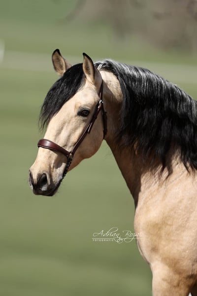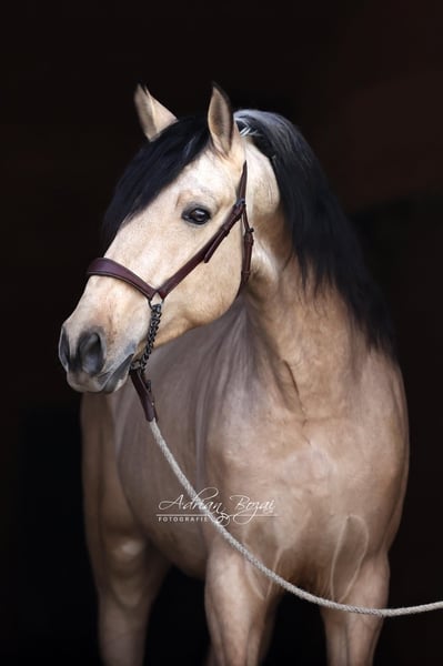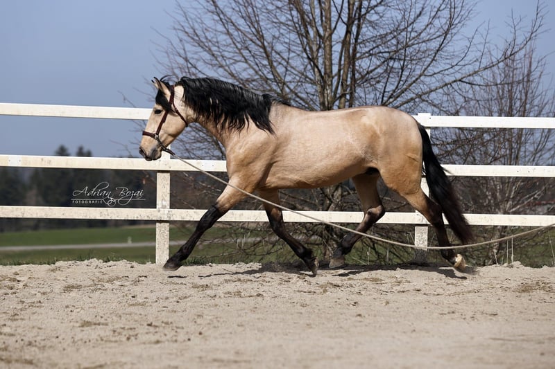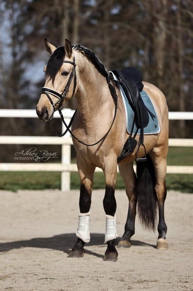 SINGAPUR SH is a very affectionate horse. He is people-oriented and easy to handle. His breeder gently introduced him to life as a riding horse with great sensitivity and patience. He is backed and has been ridden in the arena under saddle. Since arriving in Germany, he has settled in quickly, and training is ongoing daily. He shows curiosity and a willingness to learn. His beautiful eyes and excellent movement are particularly noteworthy. This is a horse that draws attention wherever he goes and is versatile in his use. I am excited to see where his journey will take him. One thing is certain: he will make his new owners very happy. He was raised in Galicia, in an environment that was natural and appropriate, in a herd on large pastures with woodland areas and grazing land. Horses from Galicia almost never have adaptation problems, as the vegetation is very comparable to ours. They are accustomed to lush meadows, plenty of rain, and snow. His previous life was carefree and beautiful. He has never had a negative experience, which is why he fully trusts humans. General information about getting to know our horses: We make every effort to introduce our horses to the riding life with trust and confidence. We are happy to present the horses lunging and under saddle. For serious buyers, trial riding and groundwork are also possible. A viewing fee of €50 applies per visit, which helps us protect our horses from the current trend of frequent trial rides by many different potential buyers. We have found that our buyers appreciate that their future horse has not been tried by too many different people. Thank you for your understanding. You are also welcome to combine your horse search with a few days of vacation. Our cozy holiday apartments directly on the estate allow you to get to know the horses around the clock. If you are interested or need more information, please do not hesitate to contact me. Feel free to reach out to learn more about this lovable fellow.