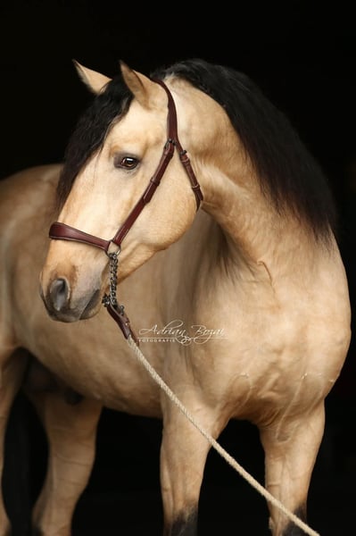 Currently on display is this beautiful PRE stallion named SULEIMAN SH, born in 2022. He was raised very naturally within a herd of 20 horses. SULEIMAN has always maintained a loving relationship with his handlers and has not experienced any negative encounters. He has been backed by a female rider and was introduced to riding with patience and care. This stunning buckskin impresses with his attractive appearance and friendly, playful personality. With an estimated final height of 16.1 hh, he offers the perfect size for enthusiasts of larger Spanish breeds. He has a very solid foundation, making him suitable for slightly stronger riders as well. The stallion has been broken in according to his age and is consistently attentive, showing joy in his work. He is ideal for riders seeking a reliable partner for leisure riding. General information about getting to know our horses: We make every effort to introduce our horses to riding life in a trusting manner. We are happy to present the horses both lunged and under saddle. For serious buyers, trial rides and ground work are naturally possible. A protection fee of €50 per visit applies during viewing, which helps us prevent the current trend of excessive trial riding. We have found that our buyers appreciate that their future horse has not been tried by too many different hands. Thank you for your understanding. You are also welcome to combine your horse search with a few days of vacation. Our cozy holiday apartments directly on the estate allow you to get to know the horses around the clock. If you are interested or need more information, I am happy to assist you. Please contact me to learn more about this wonderful gentleman.