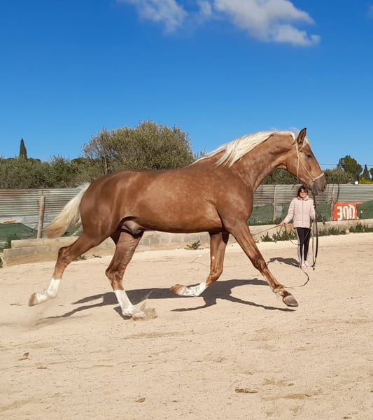 3 years old dark palomino PRE Stallion from REMACHE XIII bloodline. Excellent pedigree and movement so will do well both in dressage as in breeding diluted coloured PRE horses. Videos on request. The horse is located in Spain.