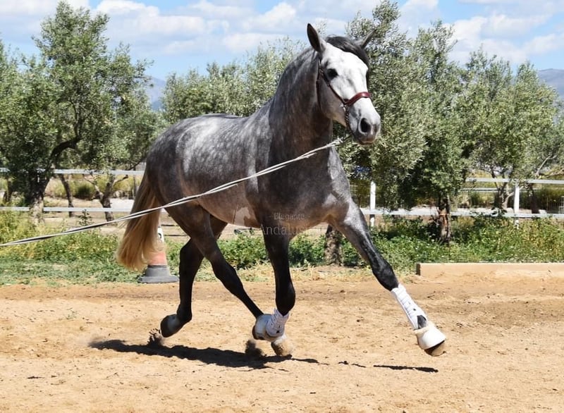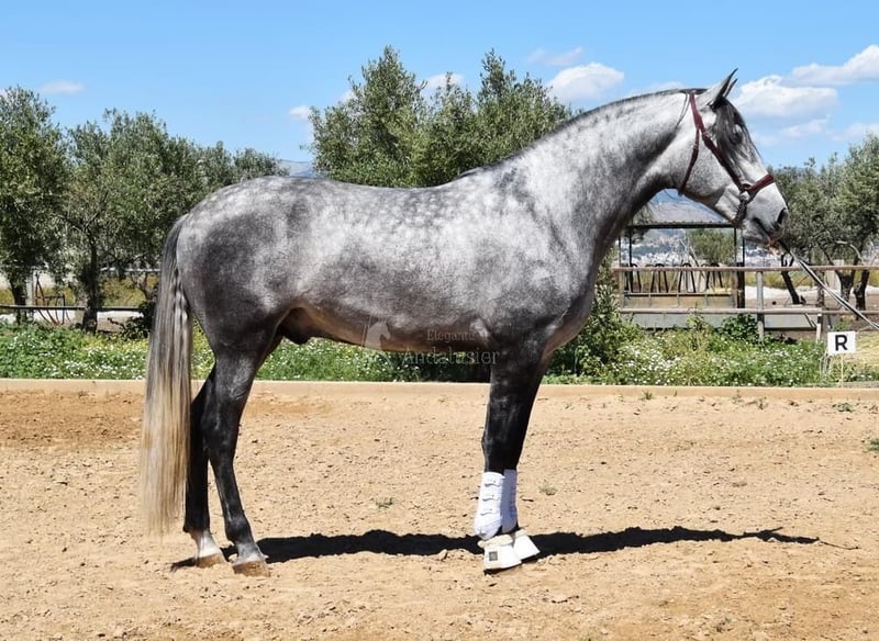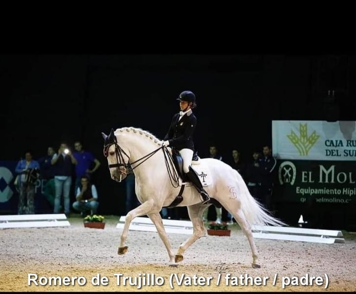 bel carattere con un temperamento piacevole, curioso, un po' cavalcato nelle andature di base, molto alto, barocco, buoni movimenti e pedigree, ha già le radiografie, pedigree: Gonzalo Valenzuela Ruiz, Marin Garcia, Yeguada Militar, ha diversi antenati qualificati www.elegante-andalusier.com