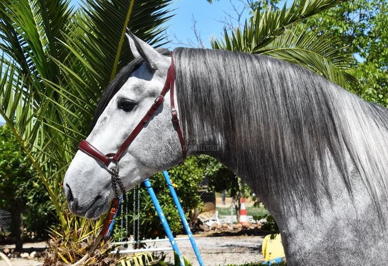 uroczy charakter z przyjemnym temperamentem, ciekawy, nieco ujeżdżony w podstawowych chodach, bardzo wysoki, barokowy, dobry ruch i rodowód, ma już zdjęcia rentgenowskie, rodowód: Gonzalo Valenzuela Ruiz, Marin Garcia, Yeguada Militar, ma kilku wykwalifikowanych przodków www.elegante-andalusier.com