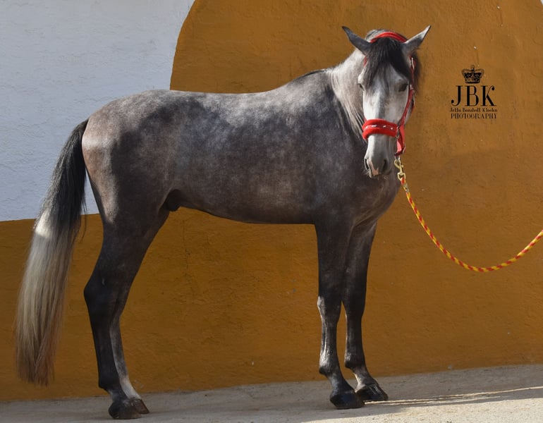 A really great PRE darling with an excellent bloodline. Comanche is currently 1.6o m tall. He was born on 23.05.2021. His bloodline is bursting with specimens of distinction. We find some Teodoro Herce bred treasures in it, Yeguada Lovera specimens and the elite bred Educado X from the Guardiola breeding. With Candau and Pallares we have tried and tested Cartujano lines. A dream prince, this great young stallion. The superior PRE is reflected not only in his movements, but also in his character. He also cooperates very well, is interested in everything new and is completely problem-free in training and handling.