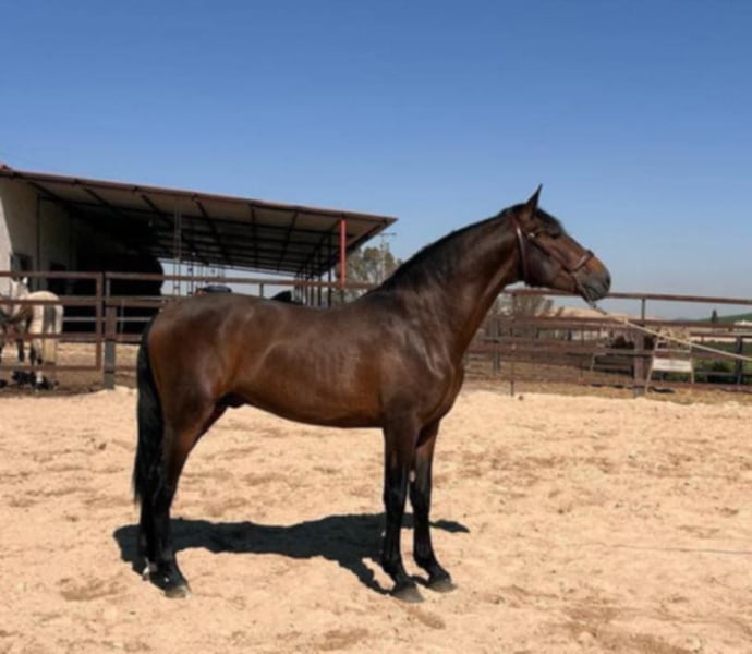 He is a (soon-to-be) 5-year-old bay PRE stallion with classic type and an expressive presence. He stands out for his harmonious conformation, good proportions, and the typical nobility of the Pura Raza Española. The stallion is backed and under saddle, showing himself to be calm, cooperative, and people-oriented. He works willingly, is pleasant to handle, and has a well-balanced temperament. In daily handling, he is uncomplicated and friendly. He is ideally suited for riders looking for an honest, quiet PRE — whether for further dressage training or for leisure riding. A charming young stallion, who impresses both with his character and his appearance. Directly from his breeder. Mother can be visited as well and half brother is located in Switzerland. 📍 Location: Spain 📞 Further information gladly upon personal inquiry (English, German or Spanish).
