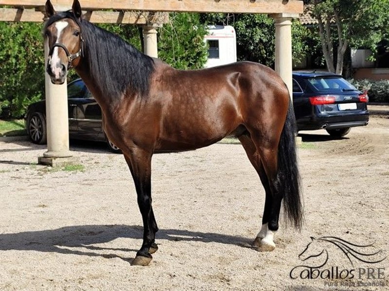 Sexo: Semental Nacido: 2020 Raza: P.R.E Color: Castaño Tamaño: aprox. 1.65 m Padre: Juglar XXVI Madre: a consultar Nivel de entrenamiento: actualmente en proceso de montura Precio: 15.000 € Ubicación: España, Mallorca Zafiro es un semental P.R.E. super elegante con un carácter claro y mucho encanto. Nació en la criadora y creció en manada. Ha tenido mucho tiempo para su desarrollo y actualmente está siendo montado por primera vez. Si se desea, por supuesto, se le puede castrar, pero durante nuestro encuentro no mostró ningún comportamiento de semental. Ahora, al ser montado, es muy fácil de manejar y se comporta muy bien. Zafiro tiene una excelente ascendencia a través de Juglar XXVI y unos movimientos muy buenos. En cuanto a su carácter, no deja nada que desear, es muy sociable y disfruta de cada momento de cariño.