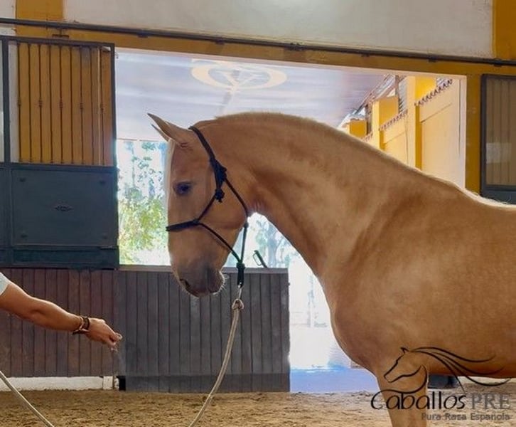 Geschlecht: Hengst Geboren: 09/2021 Rasse: P.R.E Farbe: Palomino Größe: ca. 1.66 m zur Zeit Vater: auf Anfrage Mutter: auf Anfrage Ausbildungsstand: longiert Preisklasse: 20.000.- - 25.000 Standort: Spanien, Merida Außergewöhnlicher Palomino Hengst - perfekt in Exterieur mit ausgezeichneten Bewegungen und toller Größe. Er kennt es leger longiert zu werden, wurde bisher noch nicht angeritten. Abstammung: Marti Verdia - Yeguada El Bayo. Er hat bereits Röntgenbilder ohne Befund. Sehr interessanter Junghengst, der für die Zucht gleichermassen interessant ist wie für die Klassische Dressur. Toller Charakter, cool und unerschrocken, immer aufmerksam und ehrlich.