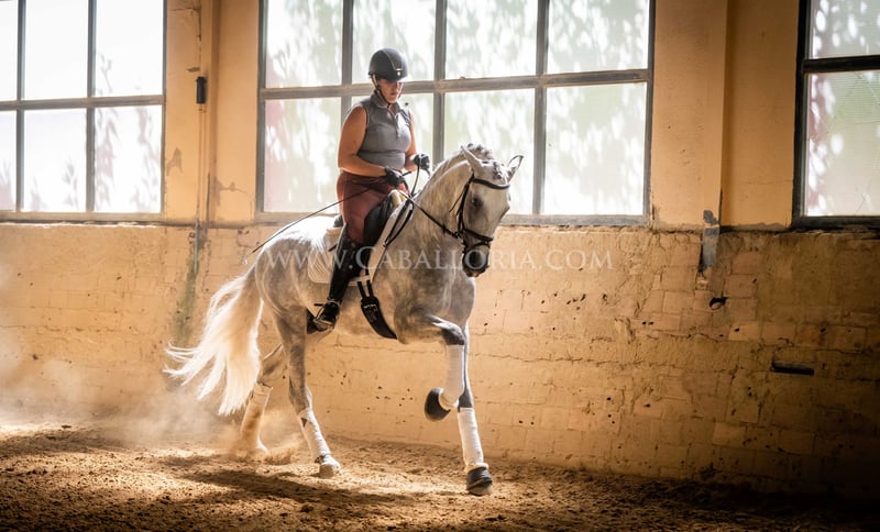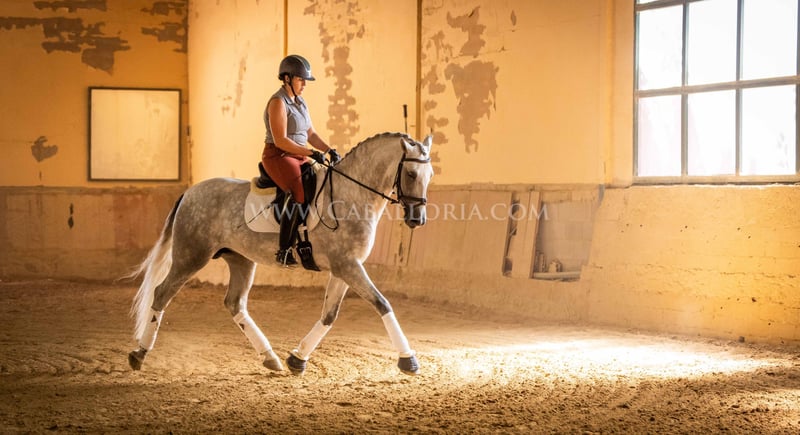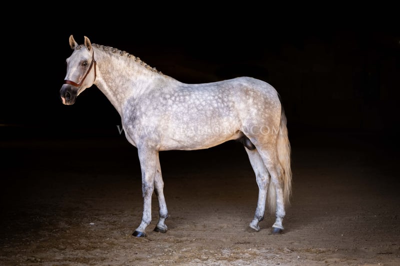 Name: Abaquio Born on: 12.04.2020 Stock size: 1,67 m Training level: Level 2 ANCCE classification: Reproductor básico ( licensed ) Abaquio is an absolutely lovely and uncomplicated PRE stallion with a height of 1.67 m. His relaxed character makes him interesting for the ambitious dressage rider as well as for the leisure rider. Whether in daily training or in handling, Abaquio is always friendly and cooperative. Thanks to his solid training at level 2, he offers a good basis for further progress in dressage or as a relaxed companion for leisure riding. Information on request! *All visual content, including photos and videos, presented by Caballoria S.L. are protected by copyright. This means that the reproduction, distribution, exhibition or any use of these materials without the express and written consent of Caballoria S.L. is strictly prohibited. Copyright law ensures that authors retain control over their works and are appropriately recognized and compensated for their use.