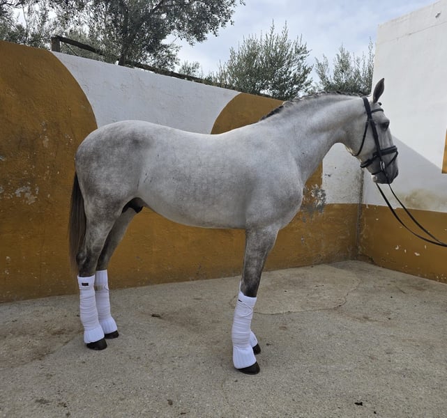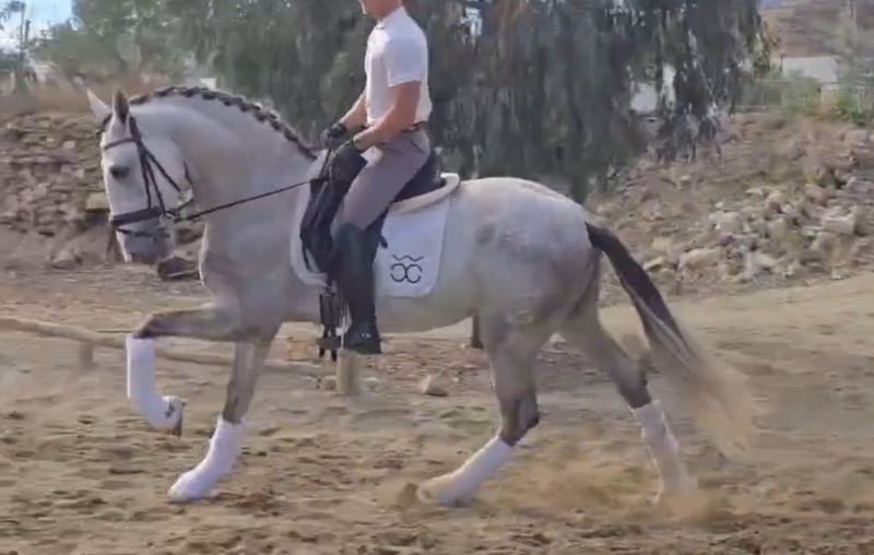 BREED: PURA RAZA ESPAÑOL DOB:2021 Height: 1.68 meters - 16.2 hands Gender: stallion Level: Basic level ridden and developing with professional rider, has excellent behavior handleling and under saddle too even is a young horse he answer really good to the rider aids and is safe, he will not spook for the aid leg, easy to ride. Being lunged for warm up. Vetcheck can be schedule under serious inquiry by interested client side. Category B 12.000€ - 20.000€ +Tax in Europe