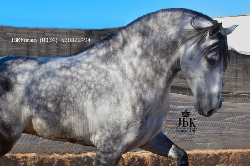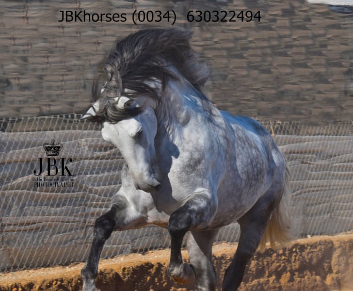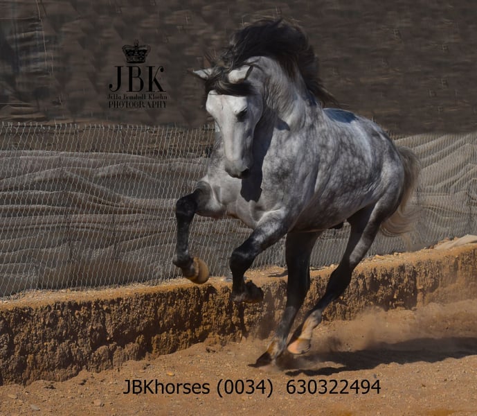 Dieser prachtvolle PRE Hengst aus dem Gestüt El Ancla wurde am 28.02.2021 geboren. Er ist ein sehr großes Exemplar seiner Rasse, und steht aber dennoch im barocken Typ. Valenciano überzeugt nicht nur mit seinem tollen Gangwerk, sondern auch mit seinem gelassenen Charakter. Ein absolut liebenswertes Pferd, das sehr gut erzogen ist und überhaupt nichts verkehrt macht. Mit Duque CXIII aus der Yeguada Las Arenas und Educado X aus der Guardiola Zucht haben wir in seiner Blutlinie 2 Elite Hengste der Rasse vertreten. Das spricht für Qualität und spiegelt sich auch in seinen Röntgenbildern wieder. 10 an der Zahl ohne Befund, aktuell vom Oktober 2025. Weitere hochwertige Exemplare aus der Bohorquez, El Ancal und die Guardiola Zucht runden das Rassebild perfekt ab.