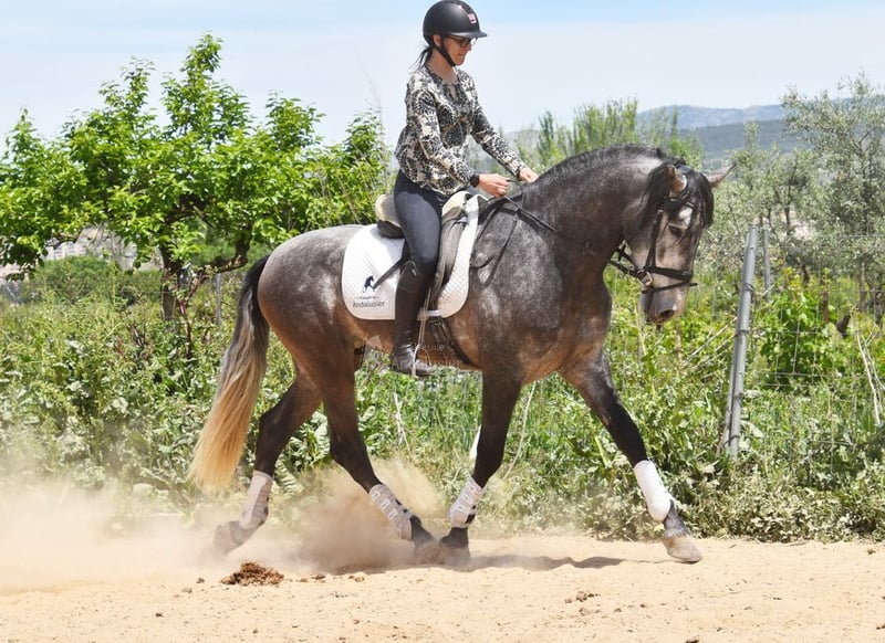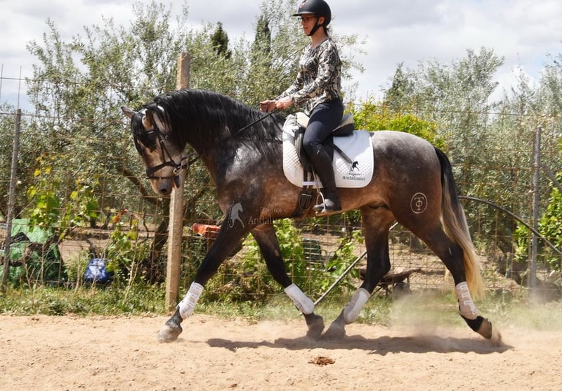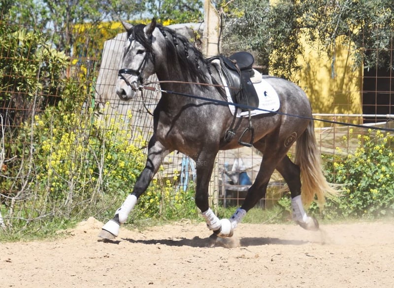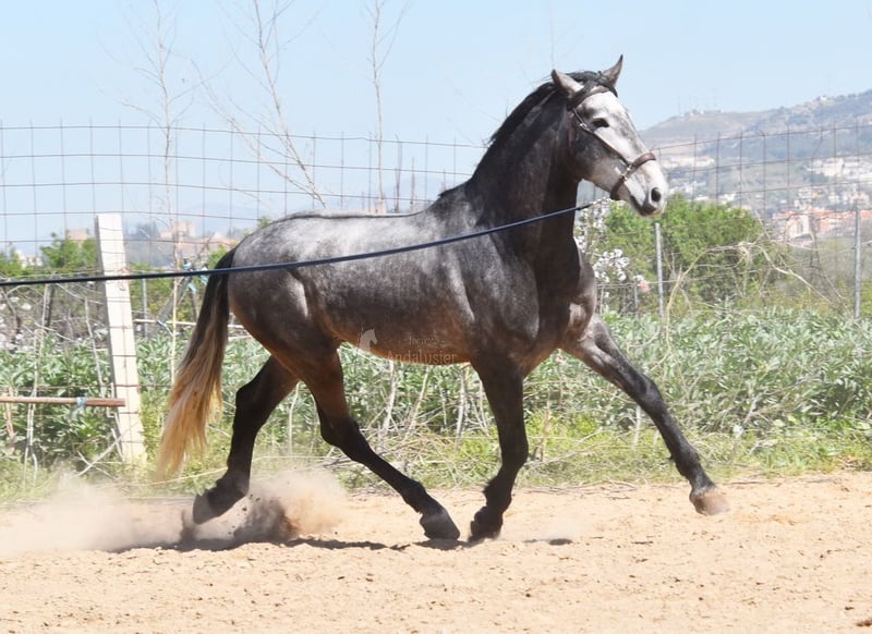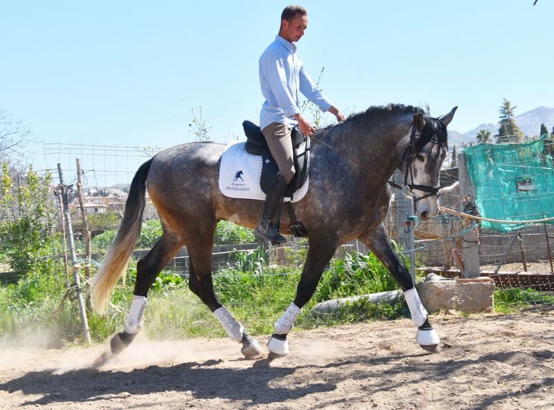 caractère doux, monté aux trois allures de base, très grand, a déjà passé des radiographies, origine : Bohorquez, Salvador Sanchez-Barbudo Martin, arrière-grand-père Perdigon XVIII est qualifié www.elegante-andalusier.com