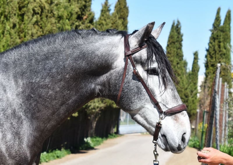 dear character, ridden in the basic gaits, very large, has already been X-rayed, lineage: Bohorquez, Salvador Sanchez-Barbudo Martin, great-grandfather Perdigon XVIII is qualified www.elegante-andalusier.com