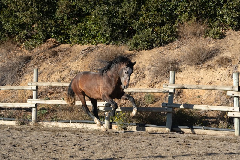 Sehr umgängliches Pferd, typisch spanisches Vollblut, sehr gute Mechanik, insbesondere im Trab und Galopp. Geeignet für jeden Reiter.