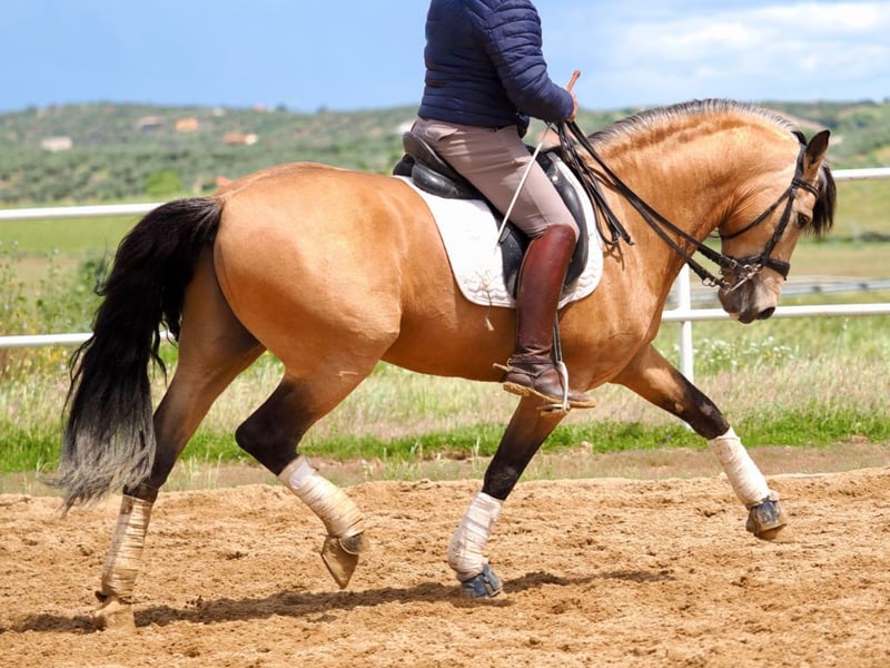We are pleased to present this special PRE horse, with a beautiful buckskin coat, born in 2020, standing at 162 cm at the withers. He is a calm, reliable horse with a good temperament—ideal for riders looking for a steady and safe partner. His training level is appropriate for his age, showing solid basics in riding, groundwork, and arena work. X-rays are available for seriously interested buyers. In addition, he is piro-free, making him eligible for export worldwide. We consider this buckskin horse an excellent option for riders seeking a trustworthy horse with a good character and potential to develop further in various equestrian disciplines. Undoubtedly, a unique opportunity for those looking for a partner with personality, beauty, and the will to keep progressing to higher levels.