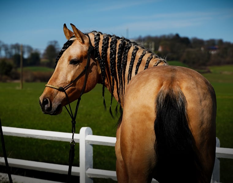 ✨ GOBERNADOR - AUSSERGEWÖHNLICHER 4,5 JAHRE ALTER BUCKSKIN-PRE-HENGST ✨. Wir stellen Ihnen Gobernador vor, einen atemberaubenden, 1,62 m großen, reinrassigen spanischen Hengst (PRE) mit hervorragendem Temperament und außergewöhnlichem Zuchtpotenzial. Dieser junge Hengst ist ein Traum im Umgang, er zeigt kein hengstähnliches Verhalten, was ihn zu einer ausgezeichneten Wahl sowohl für das Reiten als auch für die Zucht macht. Er ist leicht unter dem Sattel, immer willig und sogar sicher im Umgang mit Kindern - sein unglaublicher Charakter zeigt sich in allem, was er tut. Da wir großen Wert auf die korrekte Entwicklung unserer Pferde legen, haben wir ihm Zeit gegeben, auf natürliche Weise zu reifen, um eine starke und gesunde Grundlage für die Zukunft zu schaffen. Gobernador hat seine Qualitäten als Vererber bereits unter Beweis gestellt, denn dank seines anerkannten Zuchtstatus hat er bereits sieben prächtige Fohlen in Hirschleder und verschiedenen anderen Fellen zur Welt gebracht. Seine Genetik macht ihn zu einer wertvollen Ergänzung für jedes Zuchtprogramm, das auf Farbe, Charakter und Qualität in einem außergewöhnlichen Paket setzt. ⭐ Warum Gobernador? ✔️ Seltener buckskin PRE-Hengst mit hervorragendem Exterieur ✔️ Ruhig und leicht zu handhaben - kein Hengstverhalten ✔️ Leicht geritten, grün, aber unglaublich willig ✔️ Bewährter Vererber - sieben wunderschöne Fohlen in Wildleder und anderen Farben ✔️ Ideal für Sport, Zucht oder Freizeit Eine wirklich einzigartige Gelegenheit, einen jungen Hengst mit unbegrenztem Potenzial zu besitzen!