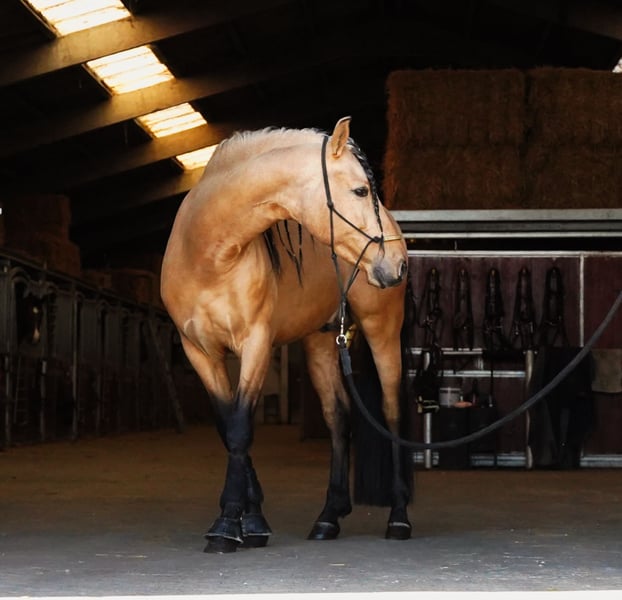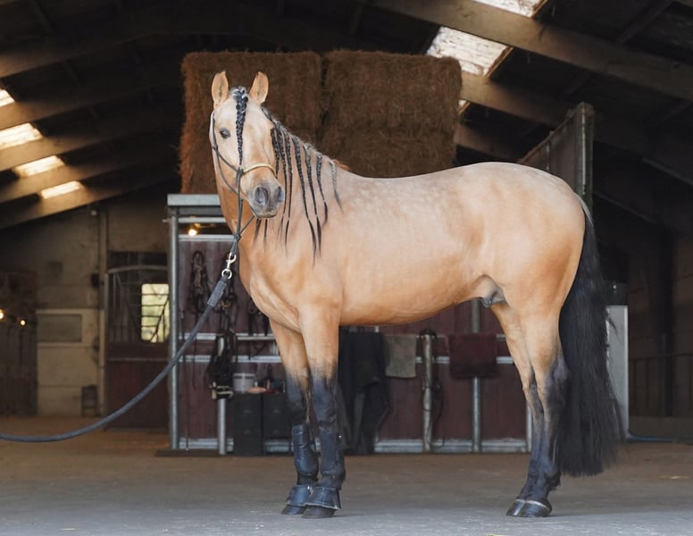 ✨ GOBERNADOR – EXCEPTIONAL 4.5-YEAR-OLD BUCKSKIN PRE STALLION ✨ Introducing Gobernador, a breathtaking buckskin Pure Spanish Stallion (PRE) standing at 1.62m with an outstanding temperament and exceptional breeding potential. This young stallion is a dream to handle, showing no stallion-like behavior, making him an excellent choice for both riding and breeding. He is lightly started under saddle, always willing, and even safe around children—his incredible character shines through in everything he does. As we prioritize the correct development of our horses, he has been given time to mature naturally, ensuring a strong and healthy foundation for the future. Gobernador is already proving his quality as a sire, with seven stunning foals in buckskin and various other coats, thanks to his approved breeding status. His genetics make him a valuable addition to any breeding program looking for color, character, and quality in one exceptional package. ⭐ Why Gobernador? ✔️ Rare buckskin PRE stallion with excellent conformation ✔️ Calm and easy to handle – no stallion behavior ✔️ Lightly ridden, green but incredibly willing ✔️ Proven sire – seven beautiful foals in buckskin and other colors ✔️ Ideal for sport, breeding, or leisure A truly unique opportunity to own a young stallion with unlimited potential!