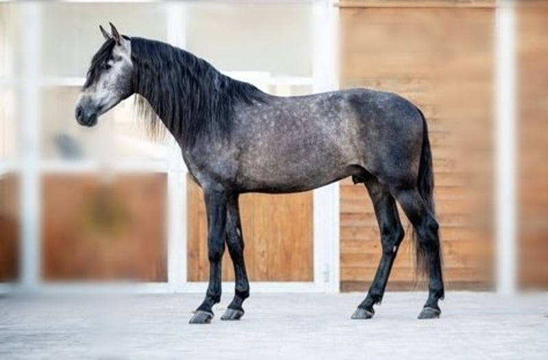 Ich verkaufe meinen 6jährigen PRE Hengst. Er ist 2020 geboren, 1, 63 cm groß und besitzt volle ANCCE Papiere. Er ist mit sehr guten Grundgangarten ausgestattet, mit wenig Campaneo und beherrscht mittlerweile die Lektionen der Klasse L. Er ist bei der FN als Sportpferd eingetragen, wurde allerdings noch nicht vorgestellt. Junio wird ausschließlich am Kappzaum longiert, Ausbinde- und Hilfszügel gibt es bei meiner Ausbildung nicht und sind ihm somit fremd. Er ist regelmäßig geimpft, entwurmt sowie dem Zahnarzt und dem Hufschmied vorgestellt. Er ist vorne beschlagen. Tagsüber hält sich Junio auf der Koppel/Paddock auf, nachts schläft er in der Box und steht dabei mit Stuten zusammen im Stall, was ihn überhaupt nicht stört. Im Auswärtstraining zeigt Junio sich artig, konzentriert und sehr sozial mit anderen Pferden. Er lässt sich vorbildlich verladen. Junio sucht jetzt seinen Menschen, der ihn auf seinem weiteren Lebensweg begleitet und ihn dabei fördert. Kennenlernen und Probereiten jederzeit nach Absprache möglich.