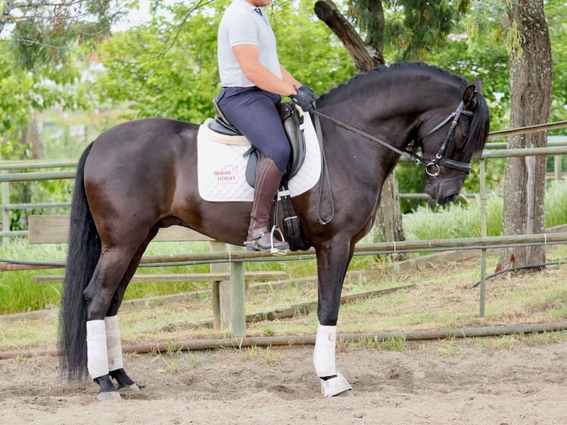 Discover this imposing black Pura Raza Española horse born in 2020, with an impressive height of 1.65 metres. His beauty and elegant bearing are just the beginning; this baroque horse exhibits exceptional movement and amplitude, reflecting the nobility of his origins. A son of a direct line of Hermitaño III, his superior genetics are combined with an impressive working ability. In addition, he has correct x-rays, guaranteeing his well-being and health. This horse is ready to conquer hearts at IberianHorses.es, where Iberian horse lovers will find in him the definition of equine perfection.