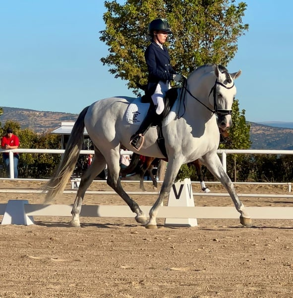 Stallion Purebred Spanish Horse. Multi-awarded and competing in SICAB. Reserve Champion of the Breed in Madrid. 2-time Breed Champion. Currently competing. Level 4 Dressage. Supports, lateral movements, shoulder-in, flying changes. Characterized by having a fabulous character and temperament in work and handling. Not problematic with mares. Works in the arena with mares without issues. Very sweet and pleasant character. Measured with a measuring stick at 1.65 m. Vaccinated, free of piroplasmosis, and good X-rays. If you are interested, it is important to come and see in person. If you like it and want to buy it, we can arrange transport to anywhere in the world. Sale with contract. A horse of high quality for competition and enjoyment. Contact only serious inquiries. Inquire about price. Contact methods: Email: info.equsur@gmail.com WhatsApp: +34 612219256