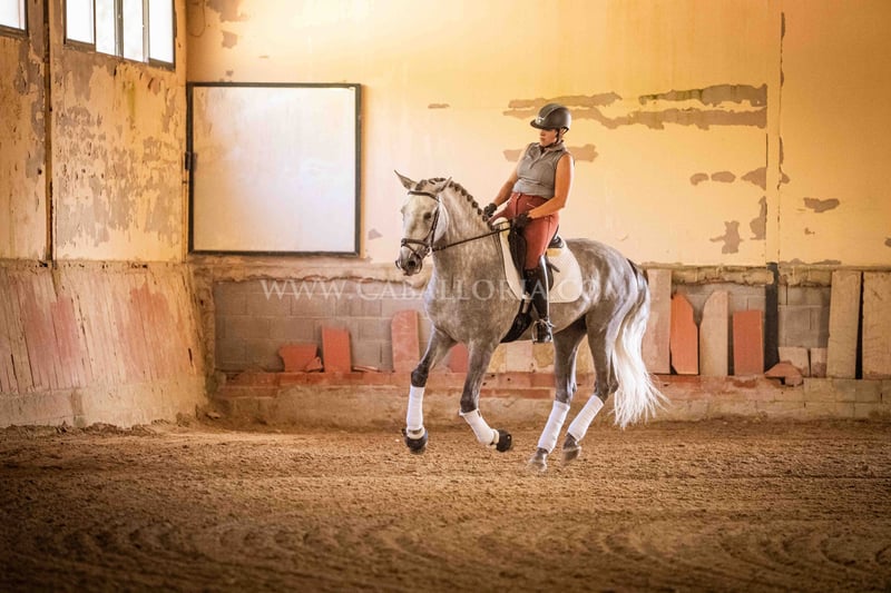 Imię: Soimo Data urodzenia: 08.06.2020 Wzrost: 1,67 m Poziom szkolenia: Poziom 2 Klasyfikacja ANCCE: Reproductor básico (kwalifikowany) Soimo to młody i obiecujący ogier PRE o wysokości w kłębie 167 cm. Ma absolutnie kochany i bezproblemowy charakter, co czyni go idealnym partnerem w codziennym życiu. Pomimo swojego młodego wieku, ma już pierwsze doświadczenia w zawodach, zdobywając imponujące 70%. Soimo jest zakwalifikowany i znajduje się w szkoleniu na poziomie 2 (E), z dużym potencjałem na przyszłość. Więcej informacji na życzenie! *Wszystkie treści wizualne, w tym zdjęcia i filmy, prezentowane przez Caballoria S.L., są chronione prawem autorskim. Oznacza to, że reprodukcja, dystrybucja, wystawianie lub jakiekolwiek wykorzystanie tych materiałów bez wyraźnej i pisemnej zgody Caballoria S.L. jest surowo zabronione. Prawo autorskie zapewnia, że twórcy zachowują kontrolę nad swoimi dziełami i są odpowiednio uznawani i wynagradzani za ich wykorzystanie.