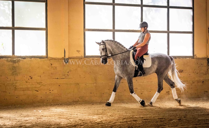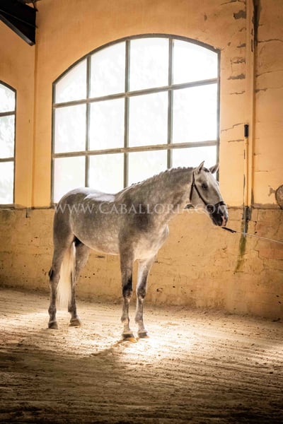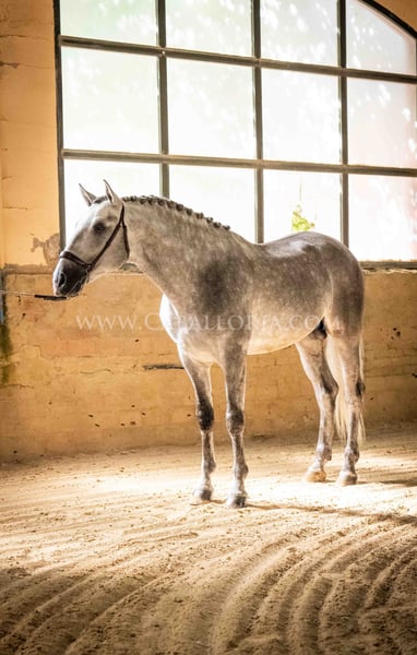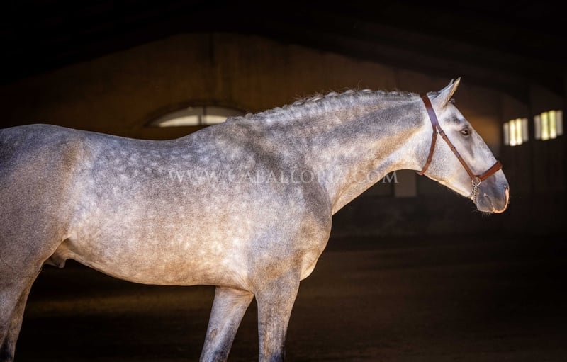 Name: Soimo Date of Birth: 08.06.2020 Height: 1.67 m Training Level: Level 2 ANCCE Classification: Reproductor básico (approved) Soimo is a young and promising PRE stallion with a height of 167 cm. He has an absolutely lovely and uncomplicated character, making him an ideal partner for everyday life. Despite his young age, he has already gained some competition experience, achieving an impressive 70%. Soimo is approved and is currently in training at Level 2 (E), with great potential for the future. More information available upon request! *All visual content, including photos and videos presented by Caballoria S.L., is protected by copyright. This means that reproduction, distribution, exhibition, or any use of these materials without the express written consent of Caballoria S.L. is strictly prohibited. Copyright ensures that creators retain control over their works and are appropriately recognized and compensated for their use.