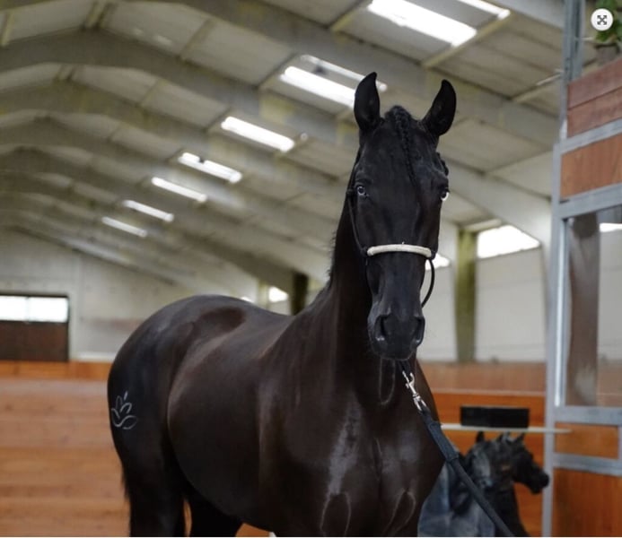 Furia is highly intelligent and sensitive. He has a long, thick mane that is still growing and a hypnotic gaze. Smoky black, meaning he carries a CR gene. Furia has been gently backed and is suitable for groundwork, shows, and circus work together with his heart person. He needs to be kept busy and works and learns very focused when engaged. He has an expressive head with a perfect profile. Horse passport. As I have built a passion-driven breeding program in Spain, Furia can be viewed in Malaga.