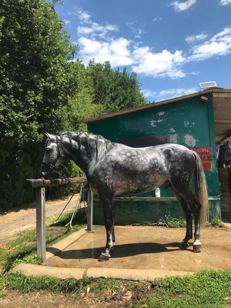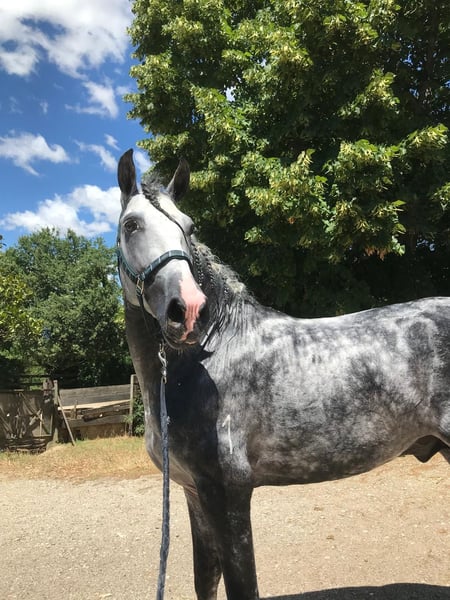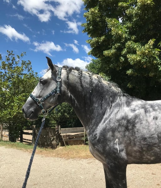 Stallone PRE, 5 years old, with excellent conformation and three expansive, elastic, and regular gaits, making him ideal for dressage. He has successfully competed in the FISE Young Horses 4-year-old dressage category, achieving an average score of 73%, demonstrating significant potential for a continued competitive career. A very good-natured horse, balanced and cooperative, easy to handle on a daily basis, and quick to learn in training. In perfect health, regularly checked by a veterinarian and farrier.