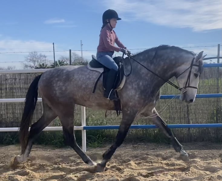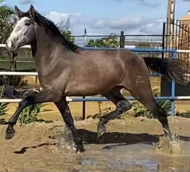 **For Sale: PRE Stallion!** We are offering the only son we have kept as a breeding stallion from our iconic SIMPÁTICO DE MILLAN III, the youngest MEJORANTE sire in history and one of the most influential stallions of the last decade in Spain. He is the sire with the most offspring reaching the finals of PSCJ and the COPA ANCCE SICAB 2023 and 2024. DUERO DE MILLAN is producing exceptional offspring, a few of which are shown in the photos. His genetic coat is GgAaEeCCNN, meaning he passes on chestnut, palomino, and black coat colors! A unique opportunity for horse enthusiasts! This magnificent purebred Spanish horse (PRE), born in 2020, is now available. This striking gray stallion stands at 174 cm and impresses with his elegance and presence. With a solid foundation in classical dressage, this horse combines beauty and talent, making him suitable for competition or leisure riding. His noble temperament and great willingness make him an ideal partner for riders of all levels. Don’t miss the chance to acquire this outstanding stallion. For more information and to arrange a visit, please contact us. Your future partner is waiting!