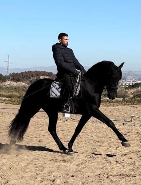 Opportunity! Son of Lladro Mar. PUREBRED SPANISH HORSE. 2019 PRE stallion standing approximately 16.1 hh, sired by Lladro Mar. This black foal has an impeccable noble temperament and a level 3 dressage training, making him an ideal horse for both arena and field. Come see him – he's a spectacular horse with natural elegance, just like his sire. We can arrange a viewing at the finca Lo Pertiguero, El Palmar, Murcia. Don't miss this chance!