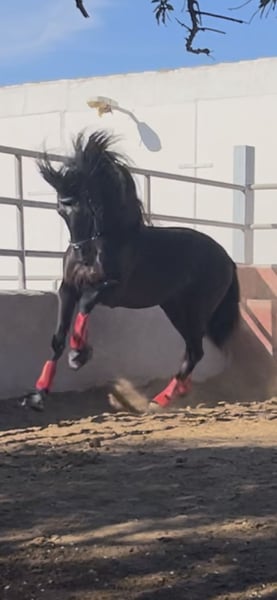 ¡Oportunidad! Hijo de Lladro Mar. PURA RAZA ESPAÑOLA. Caballo entero PRE del 2019 hijo de Lladro Mar con 1,65cm a la cruz, este Potro Negro tiene un carácter noble inmejorable además de un nivel 3 de doma clásica, un caballo ideal para pista y campo. Realiza todos los ejercicios laterales, tanto al paso, como al trote y galope, piruetas y galope inverso.Ven a verlo, es un espectáculo, tiene mucha clase natural como su padre. Lo podemos enseñar en la finca lo Pertiguero, el Palmar, Murcia. No pierdas esta ocasión!