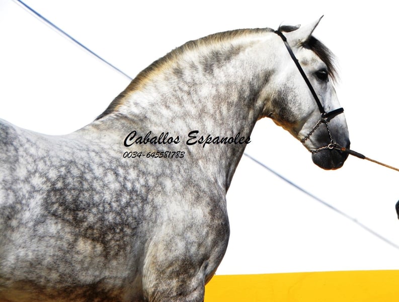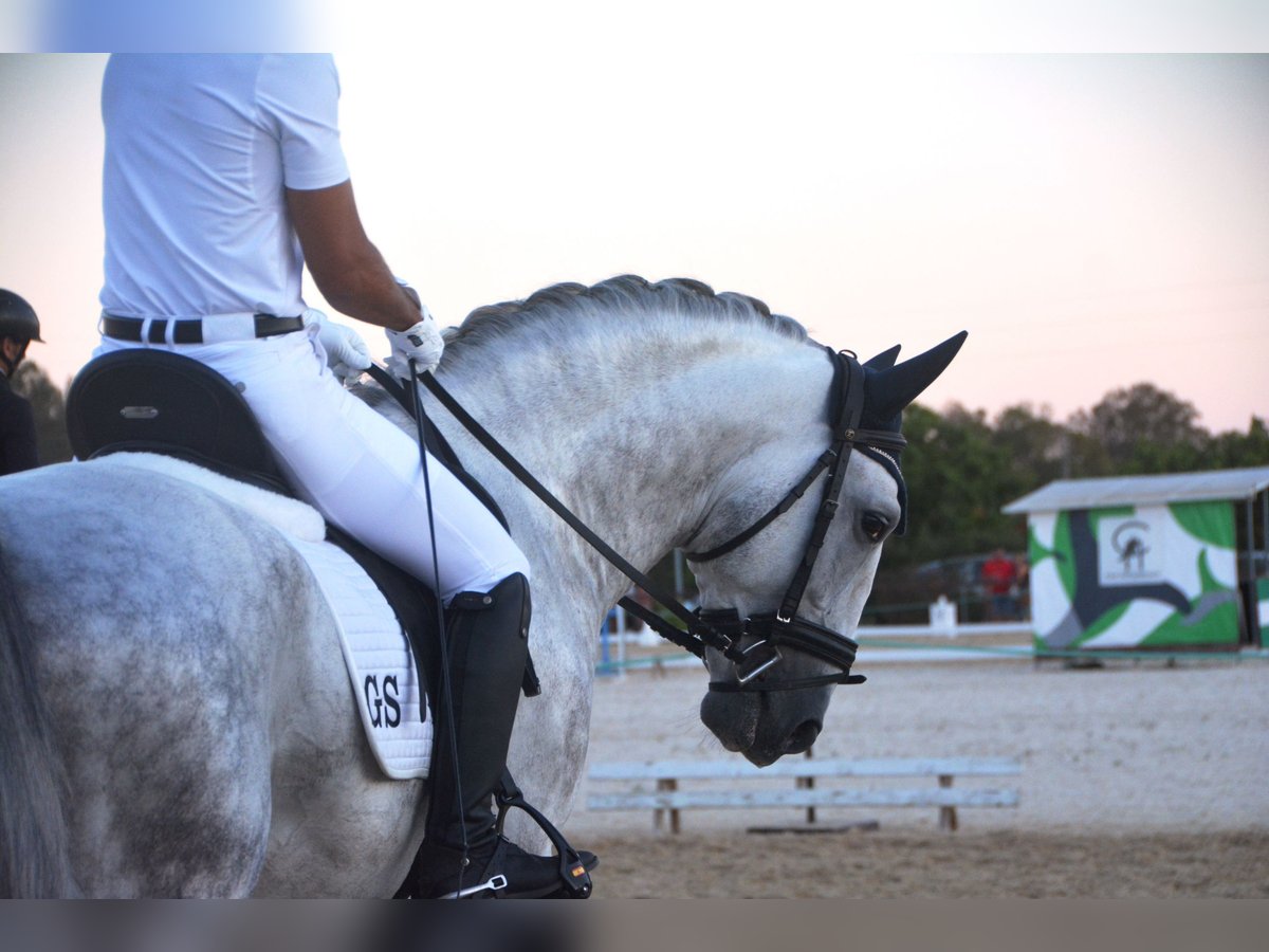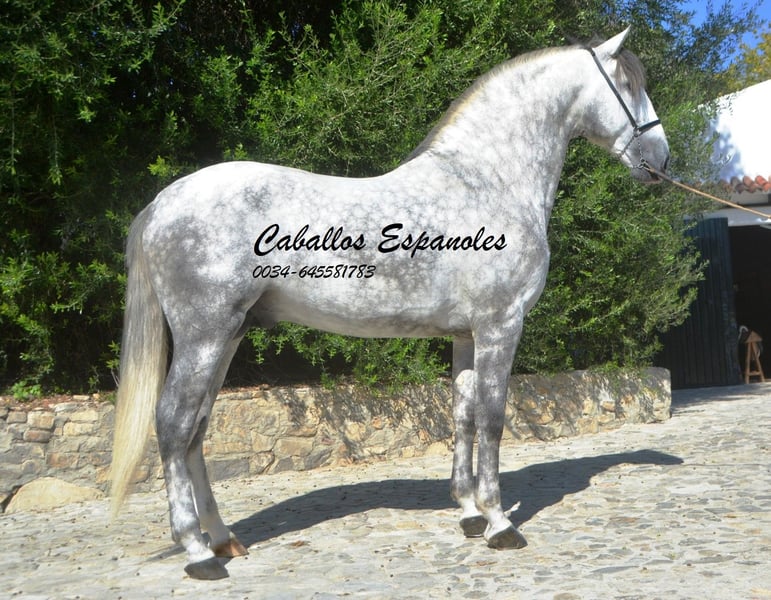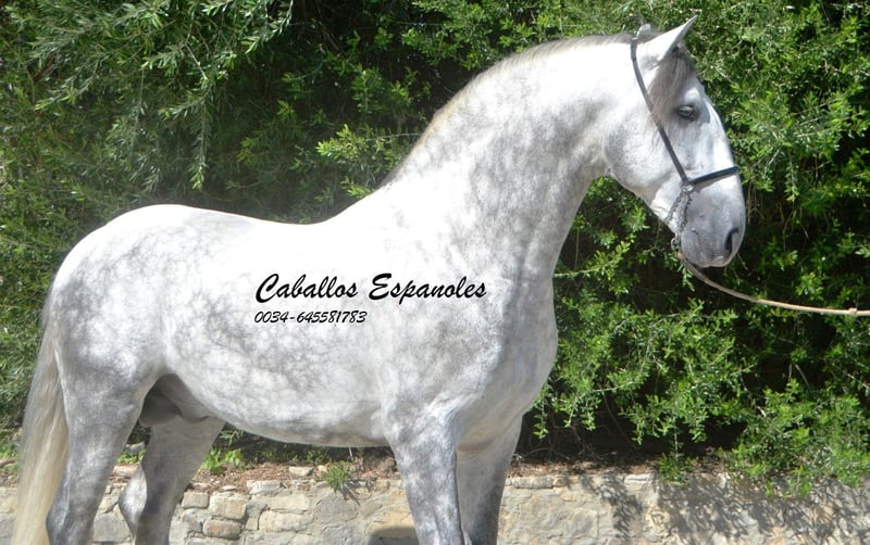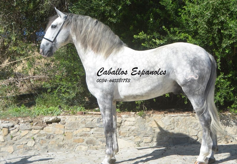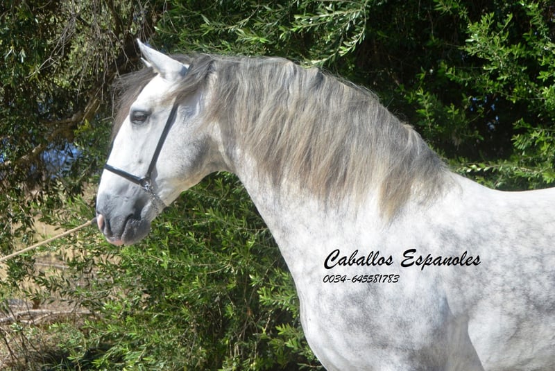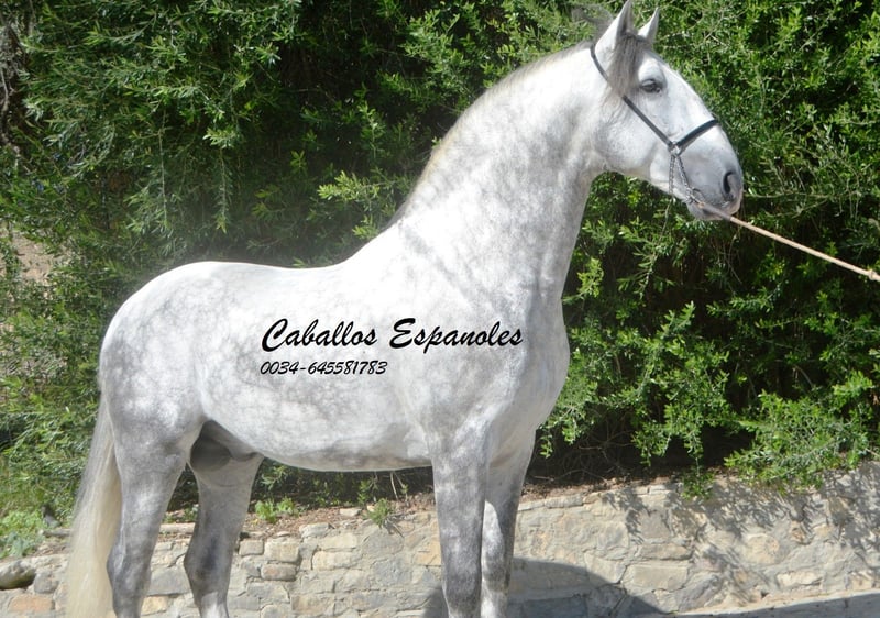 Een uitzonderlijke PRE hengst - groot, barok, met een grote manen en een rustig oog. Deze hengst is samen met zijn vriendjes op de wei opgegroeid. Al op de wei was hij een van de eersten die mij begroette. Hij speelde ook altijd graag met mijn honden. In de omgang is hij braaf en zeer aanhankelijk. Hij is in de basisgangen gereden, met zijgangen zoals schouderbinnenwaarts en schouderuitwaarts. Er wordt gemakkelijk aan een piaffe en de Spaanse stap gewerkt. Twee weken geleden heeft hij zijn eerste wedstrijd (voor 5-jarige paarden) voltooid en behaalde hij 72,2%. Deze hengst heeft veel potentieel om in verschillende disciplines verder ontwikkeld te worden. Afstamming: Vader is de voshengst Coqueto (Torreluna, Benito Sierra) en de moeder is een Armas merrie. Het paard wordt in opdracht verkocht. Hij kan graag nog bij ons in training blijven. Een keuring kan op korte termijn worden geregeld. Internationaal transport.